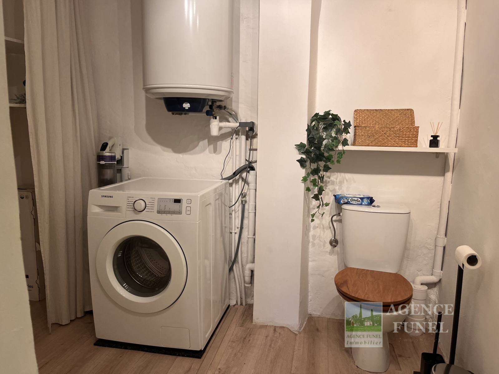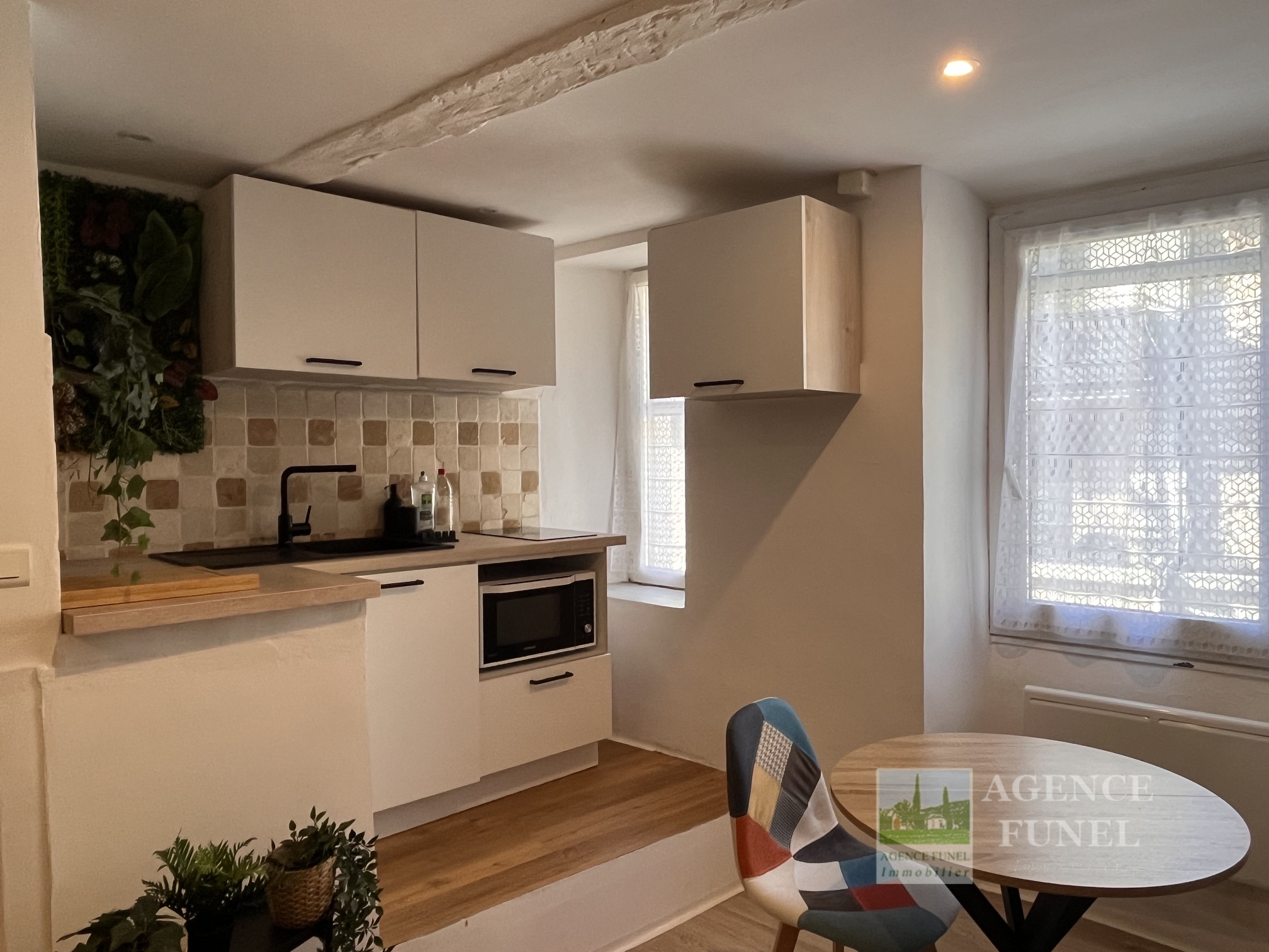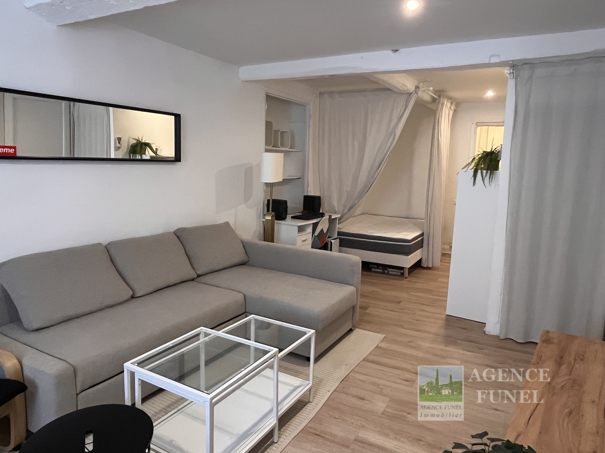 Au Coeur du village, Très bel appartement de Type T1, meublé, se composant de : Entrée sur Salon avec Cuisine américaine équipée, 1 coin nuit, 1 Wc avec rangements et buanderie, 1 Salle d'eau.