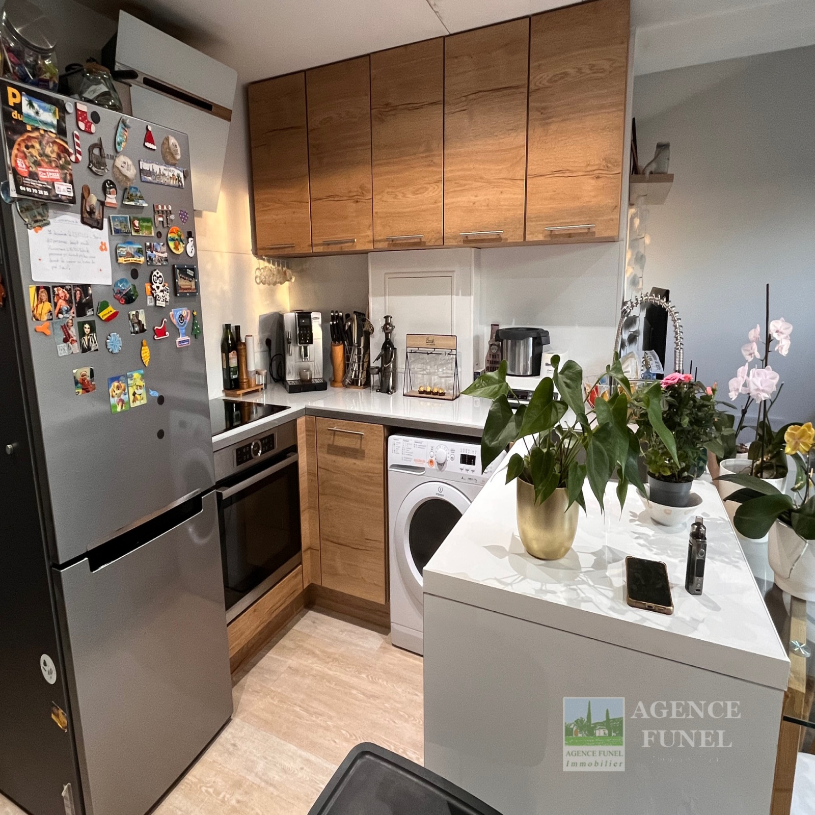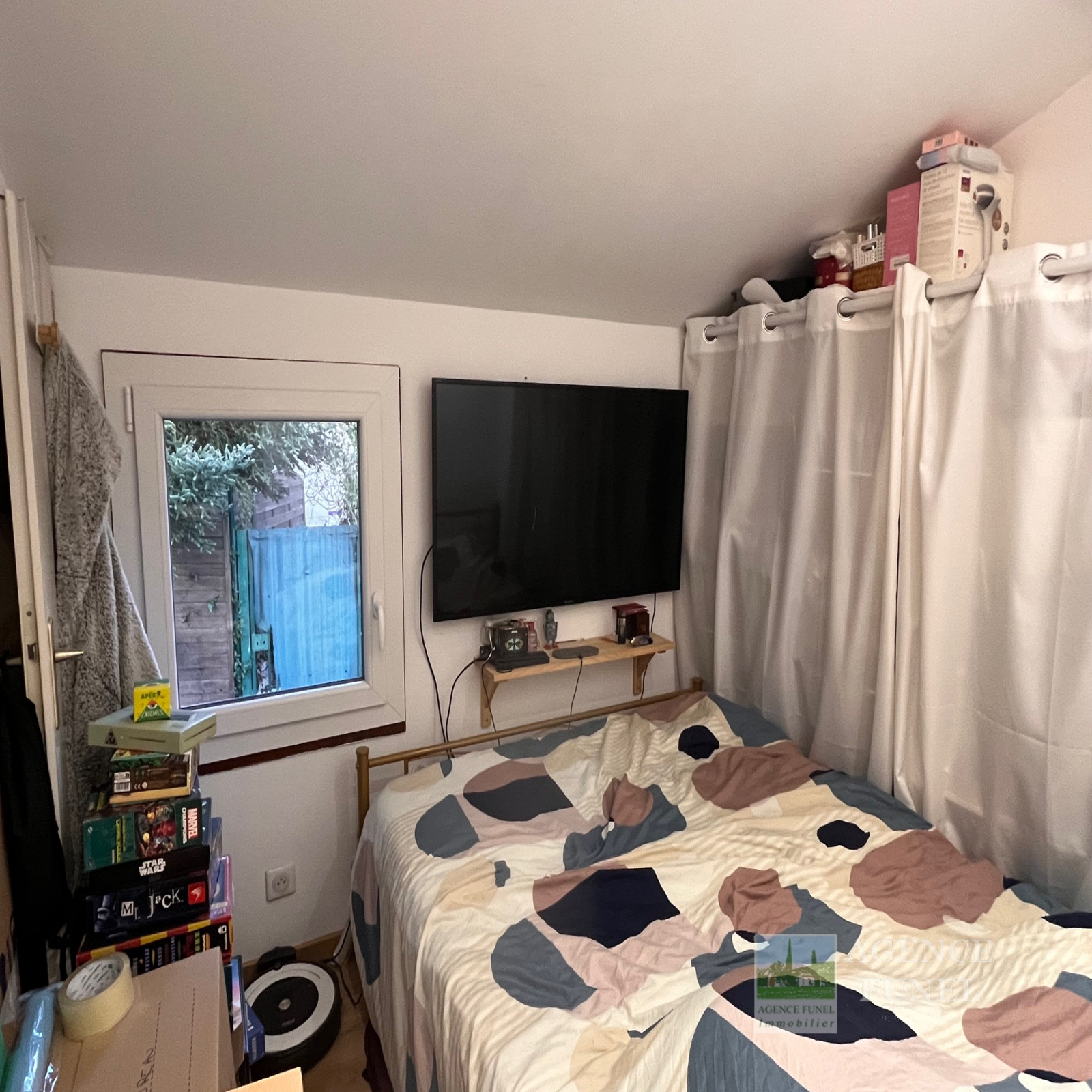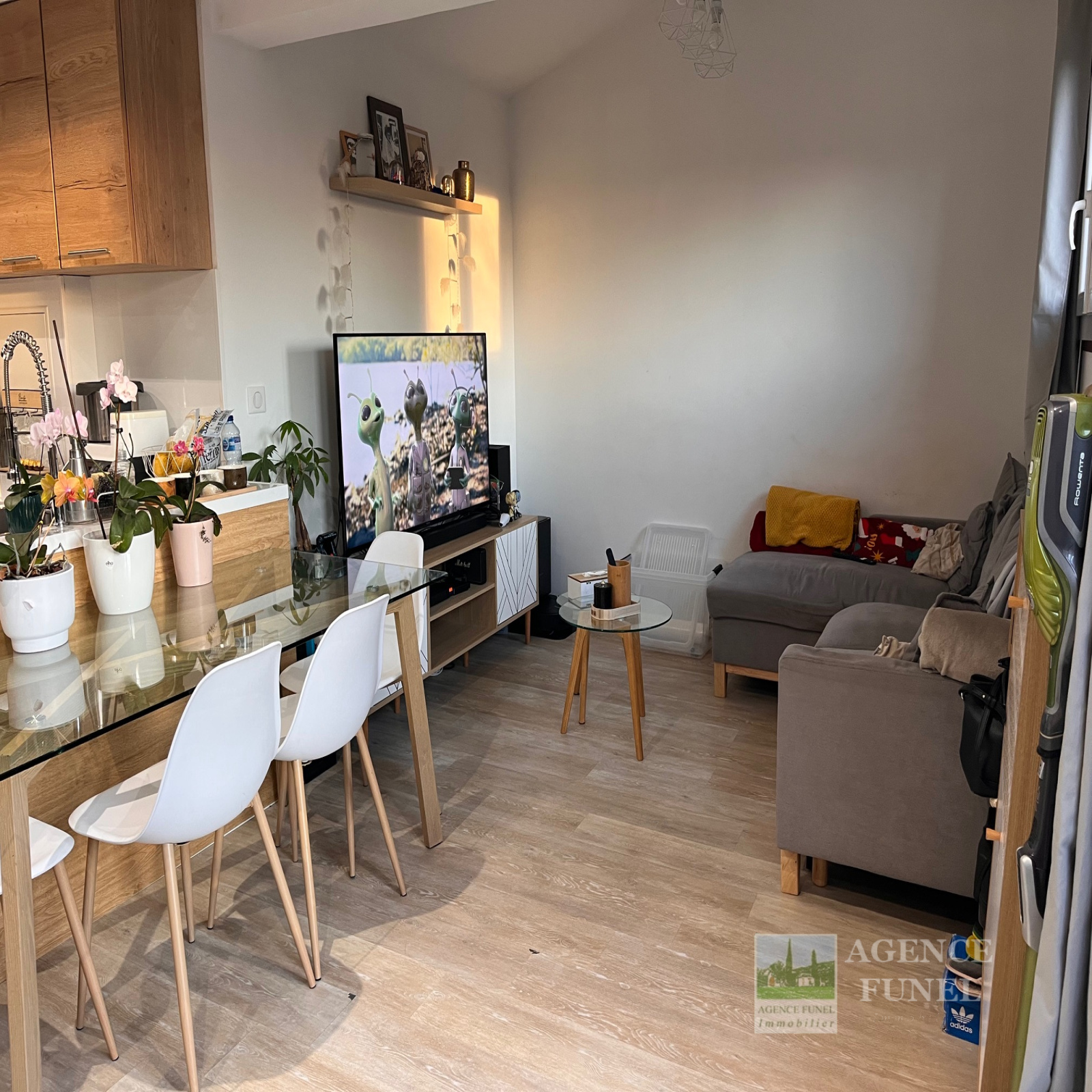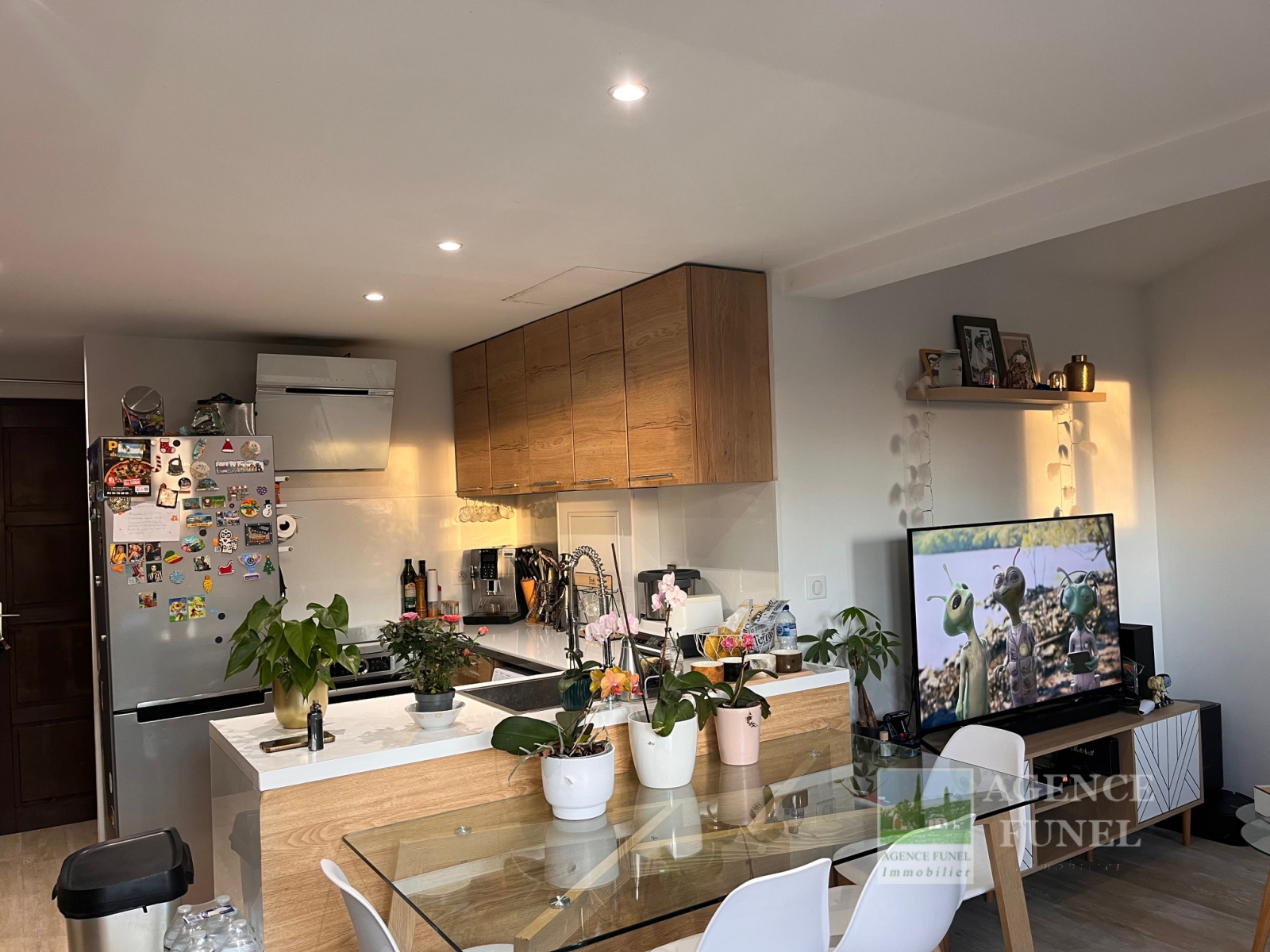 RDC : Entrée, Salon, Cuisine américaine équipée, Wc indépendant.