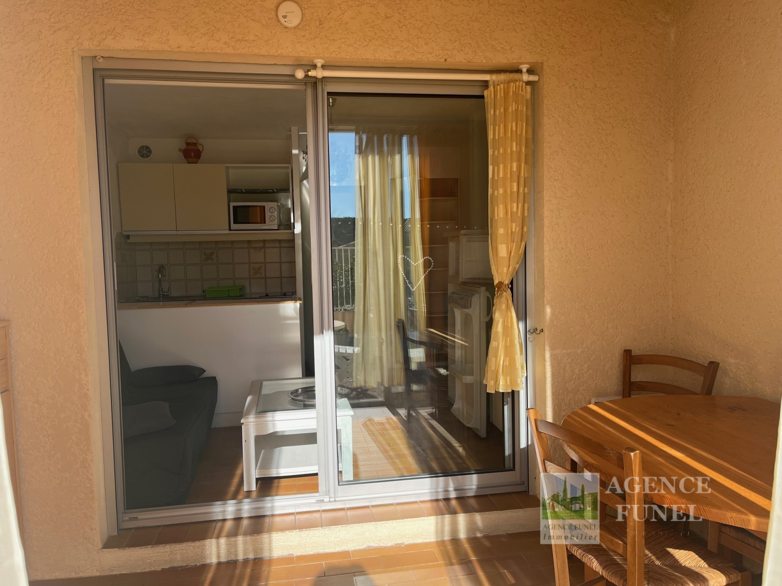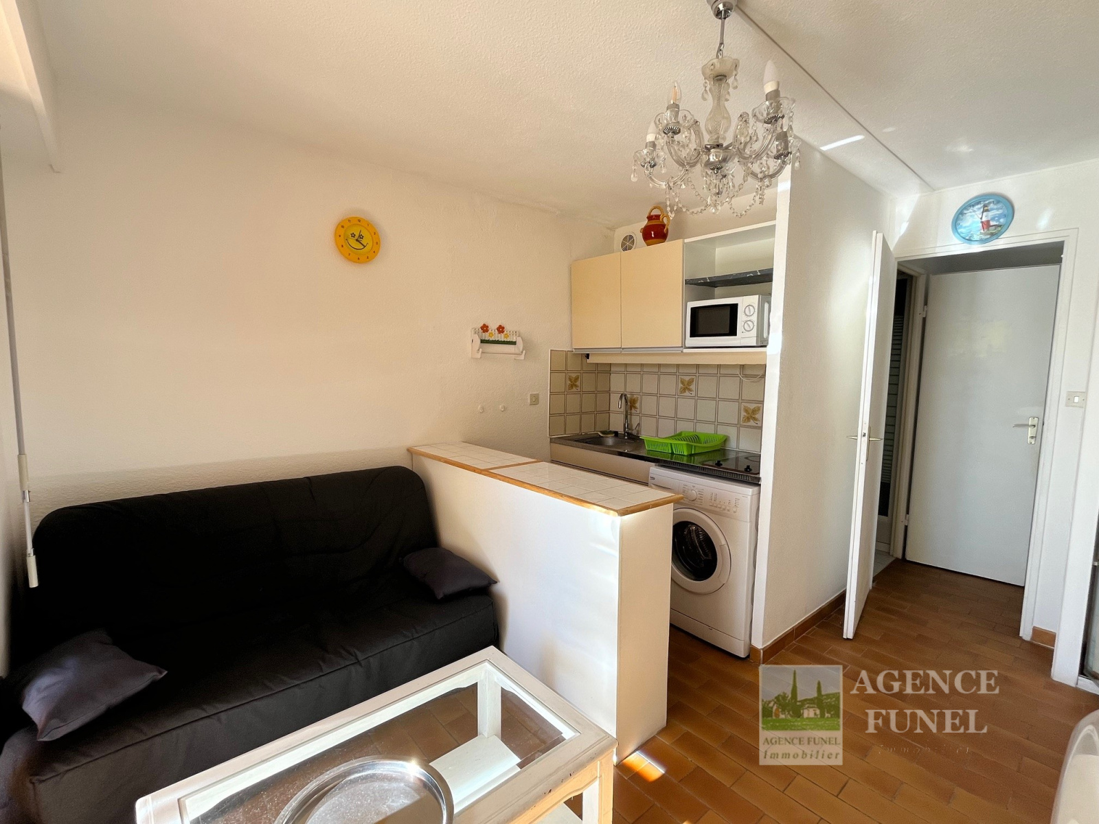 Entrée, placards, Pièce de vie avec coin cuisine, loggia fermée, 1 cabine avec coin nuit et placard, Salle d'eau avec Wc.