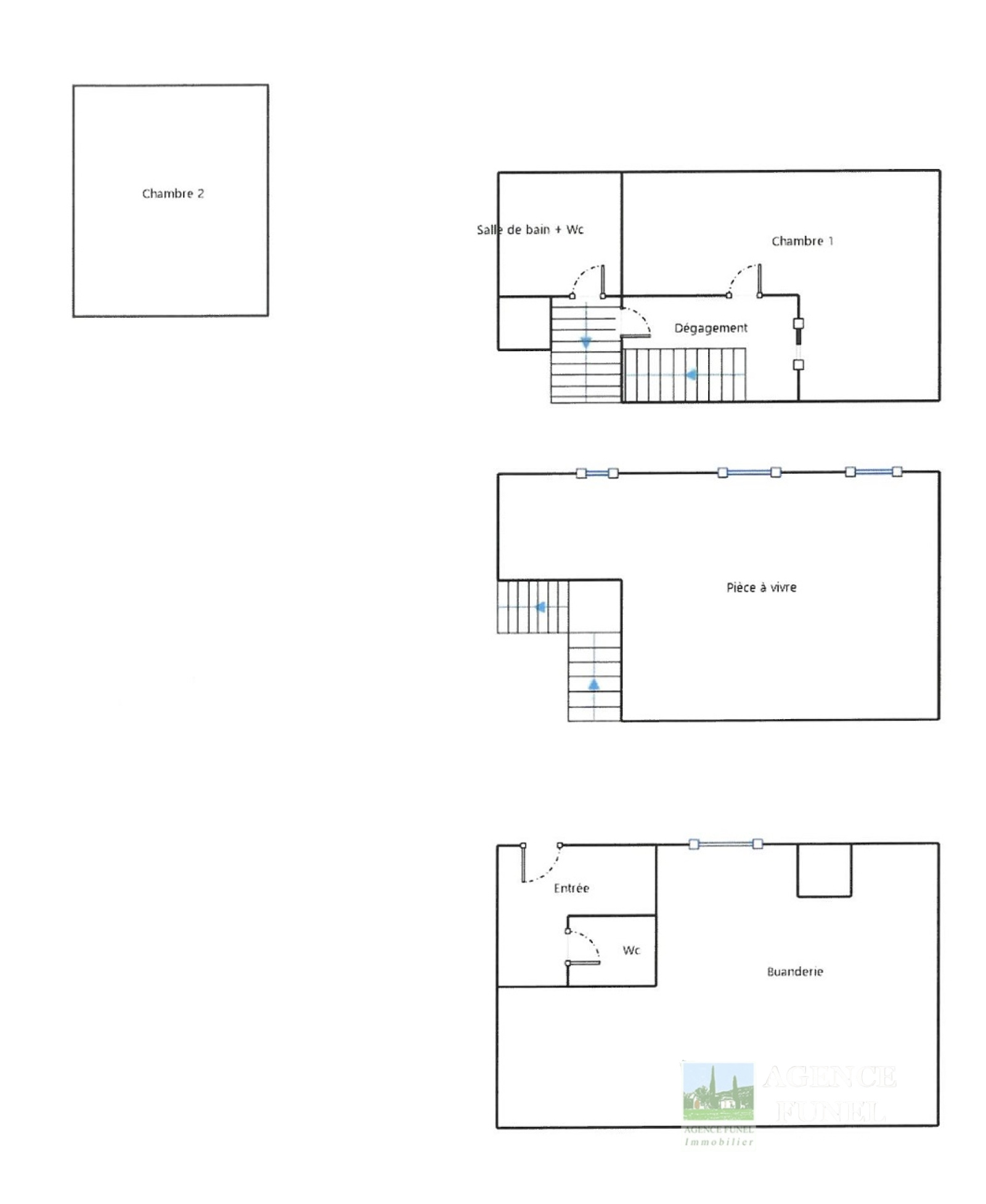 2ème étage : Dégagement avec nombreux rangements, 1 Chambre, 1 Salle de bains avec Wc.