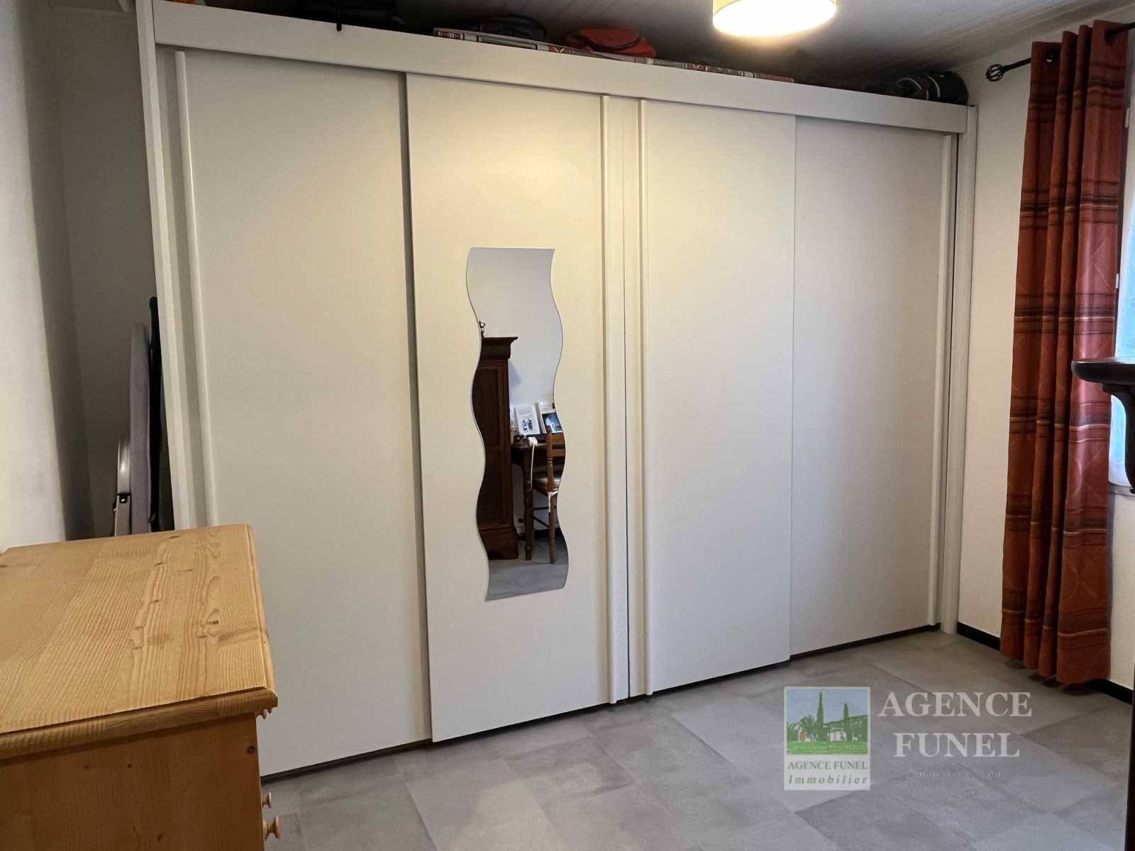 Elle se compose d'une entrée sur Salon, Cuisine aménagée avec coin repas, Dégagement avec placards, 2 Chambres, Salle d'eau, Wc indépendant