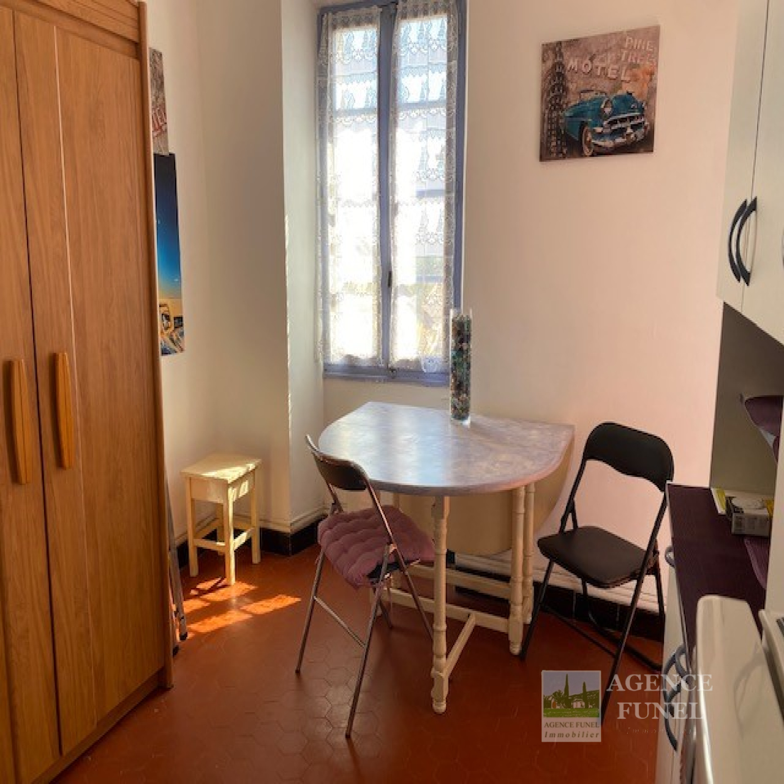 Situé au Coeur du Village, Très Agréable appartement de type 2 pièces + balcon, se composant de : Entrée sur pièce de vie, coin cuisine équipé, salle d'eau avec Wc, 1 chambre ouvrant sur Balcon.