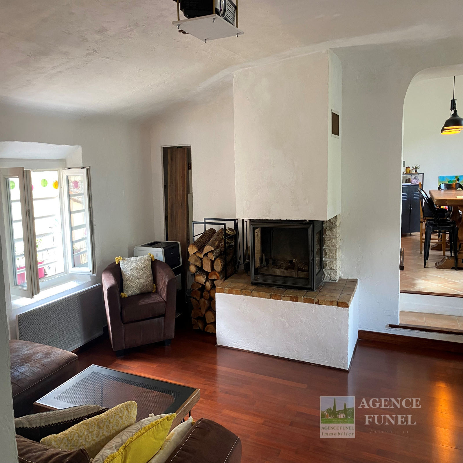 Situé dans le Coeur du Village de St Vallier-de-Thiey, Très Bel Appartement Traversant, 2ème et dernier étage d'une petite copropriété de 4 lots, très Lumineux, se composant de 3 Pièces Principales : Entrée, Living avec Cheminée-insert avec Balcon, Cuisine Américaine, Cellier, Salle à manger, 2 Chambres dont 1 avec mezzanine, Salle de bains, Wc. Grenier.