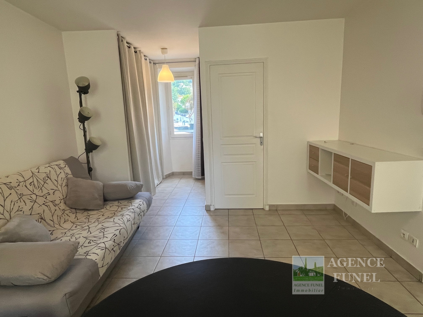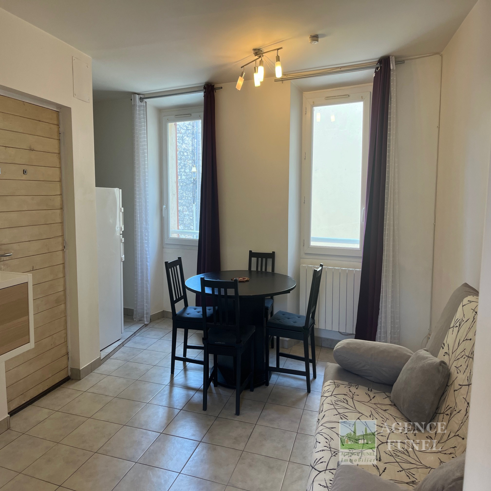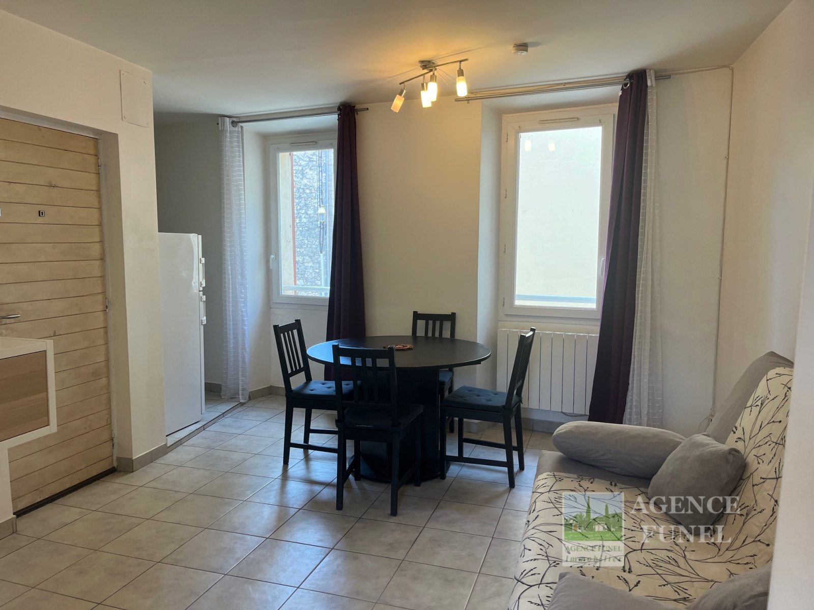 Au Coeur du village, Très Agrébale Appartement traversant situé au 1er étage d'un petit immeuble donnant sur une placette au calme, se composant d'une Entrée sur Pièce de vie avec Cuisine Américaine équipée, Salle d'eau avec Wc, Coin Buanderie.