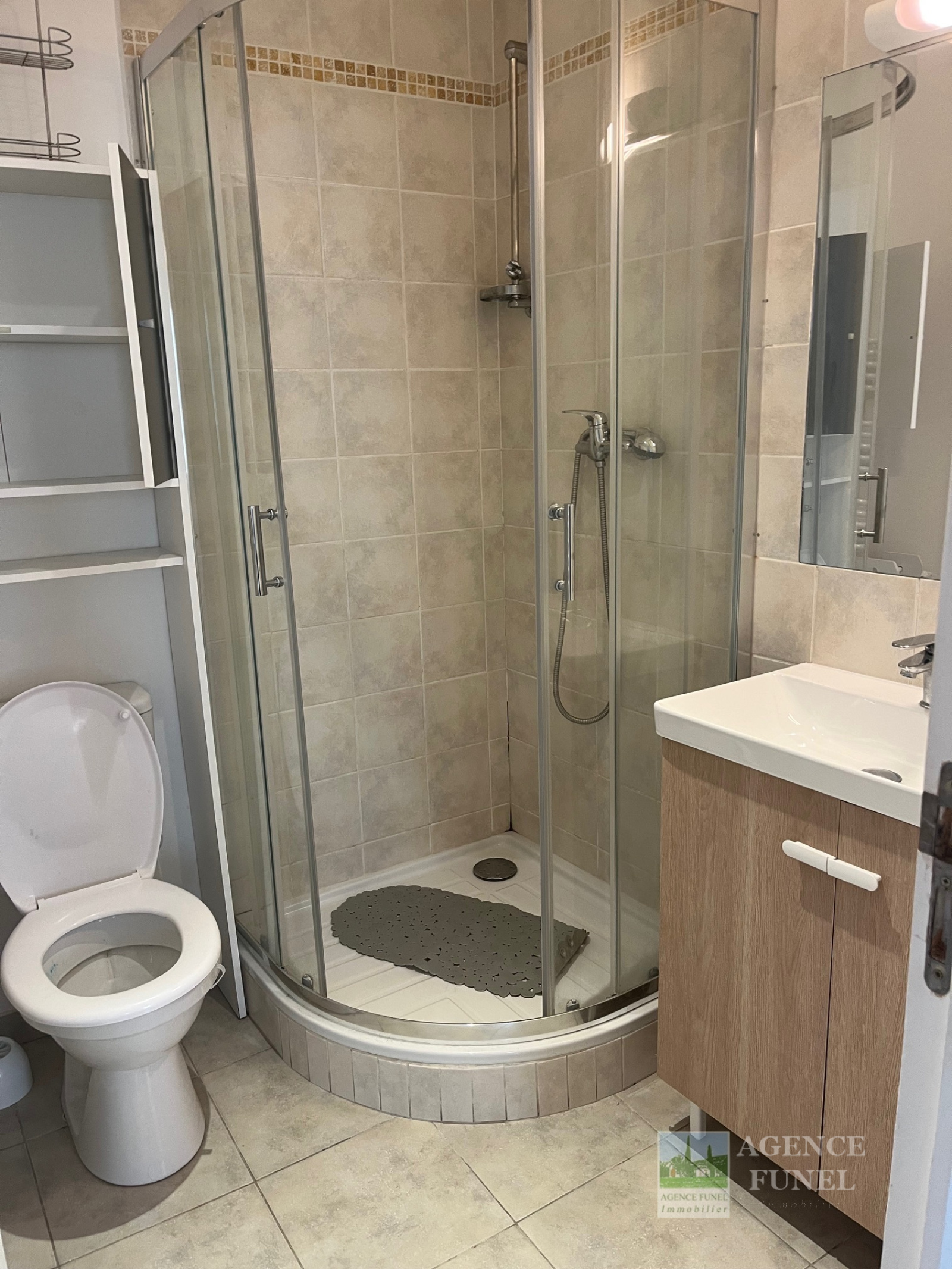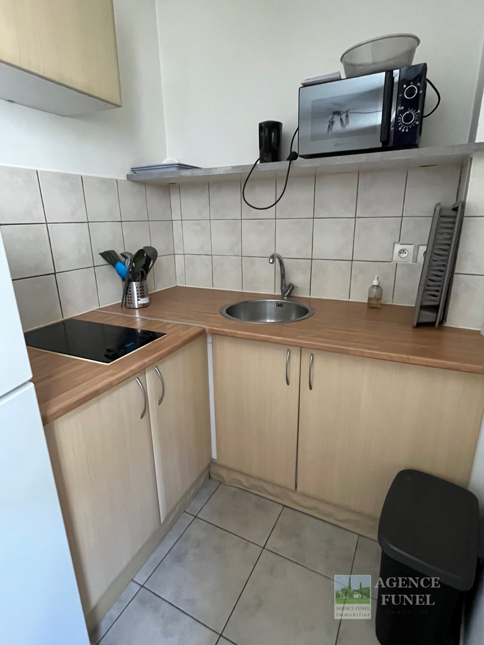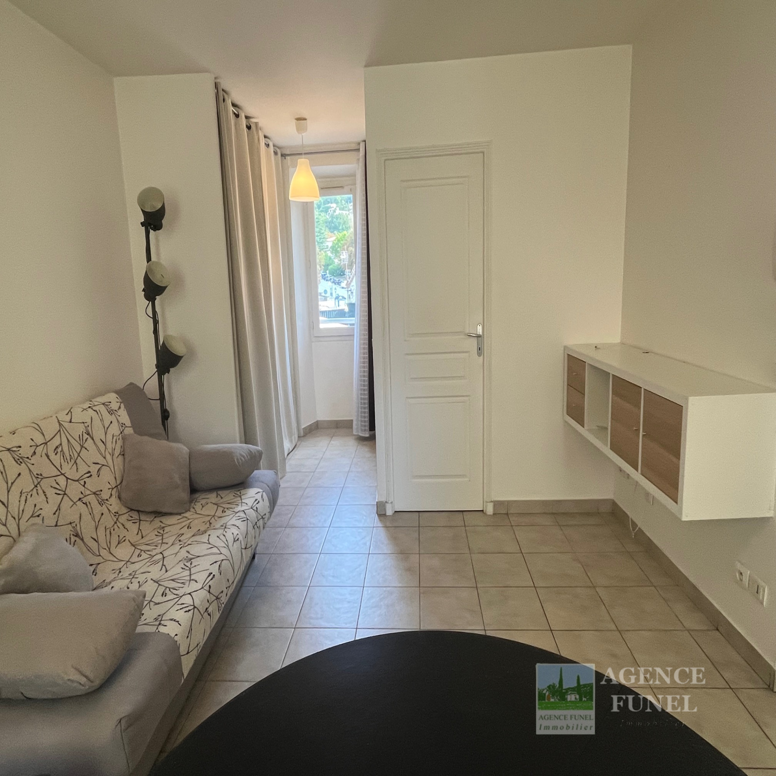 Au Coeur du village, Très Agrébale Appartement traversant situé au 1er étage d'un petit immeuble donnant sur une placette au calme, se composant d'une Entrée sur Pièce de vie avec Cuisine Américaine équipée, Salle d'eau avec Wc, Coin Buanderie.