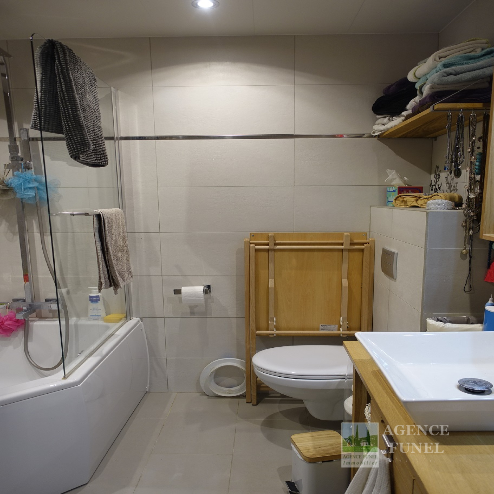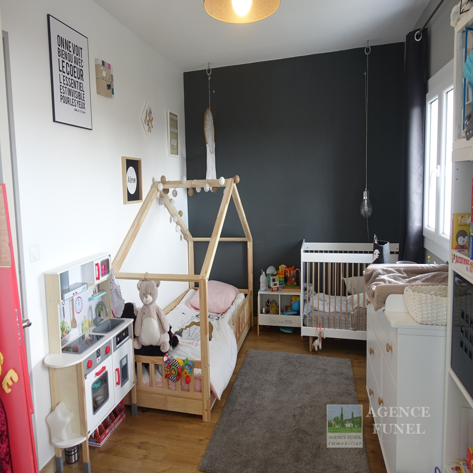 - A l'étage : dégagement, coin bureau, 2 Chambres, Salle de bains avec Wc.