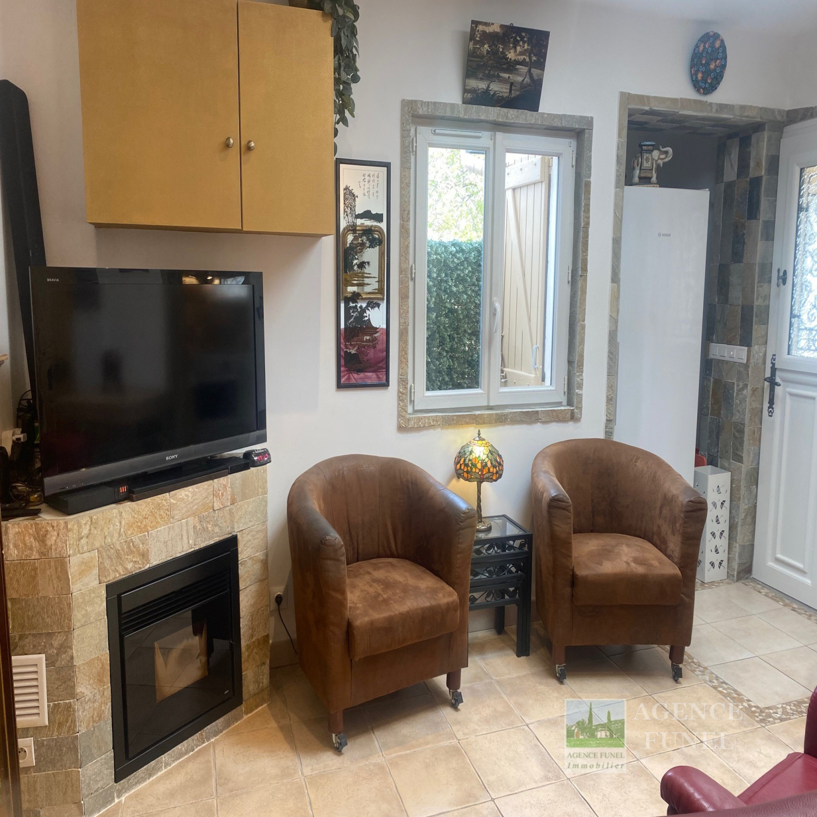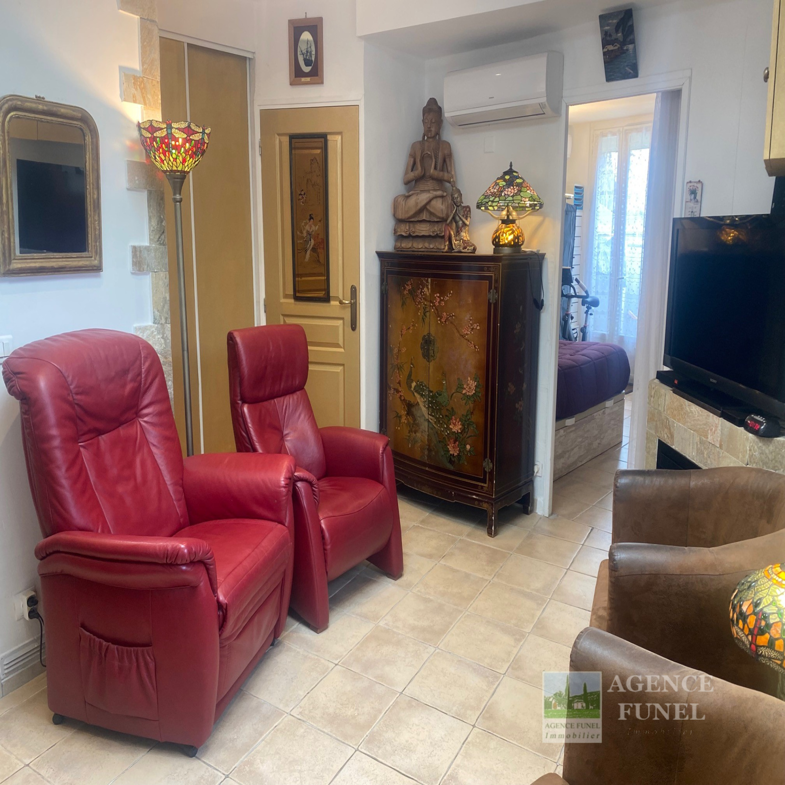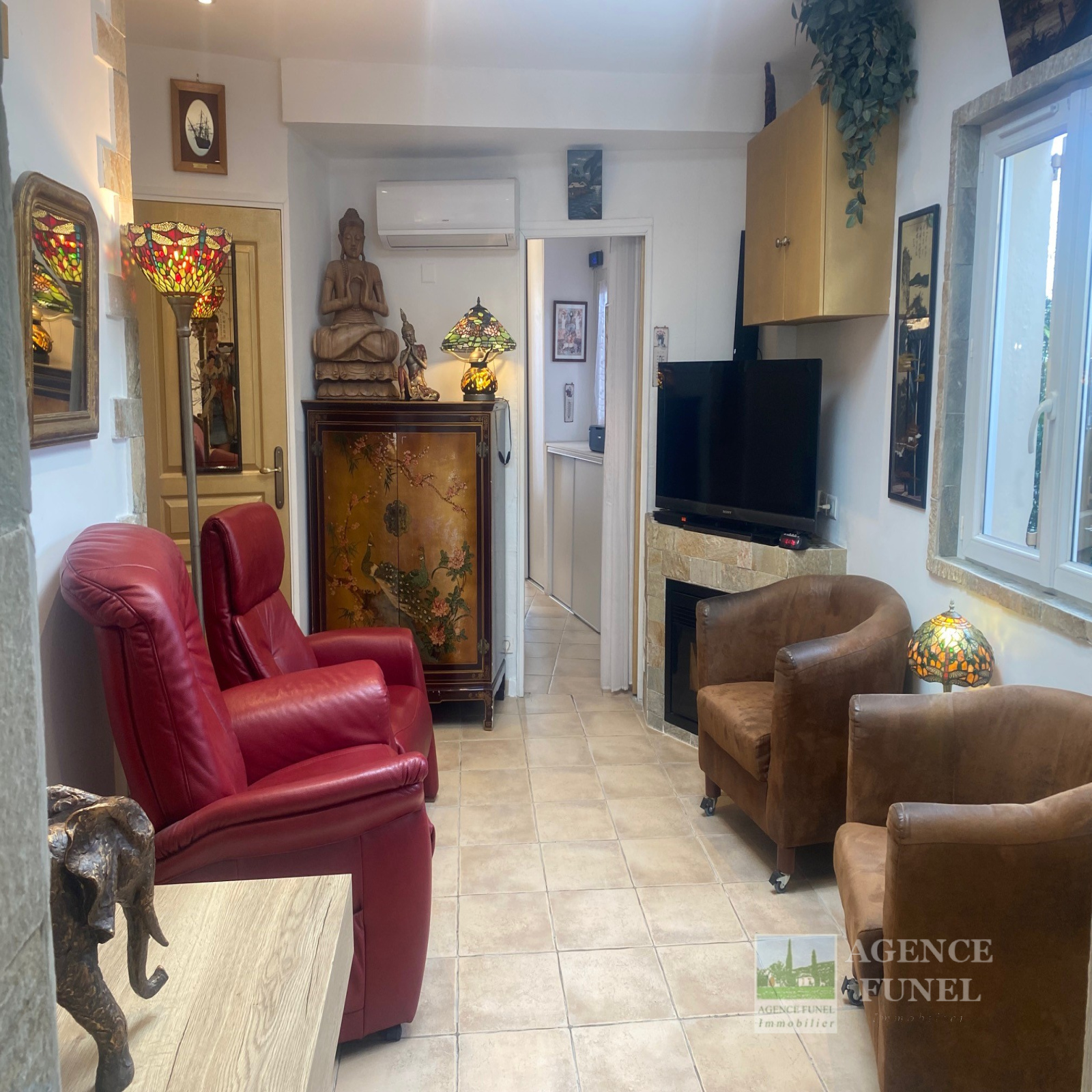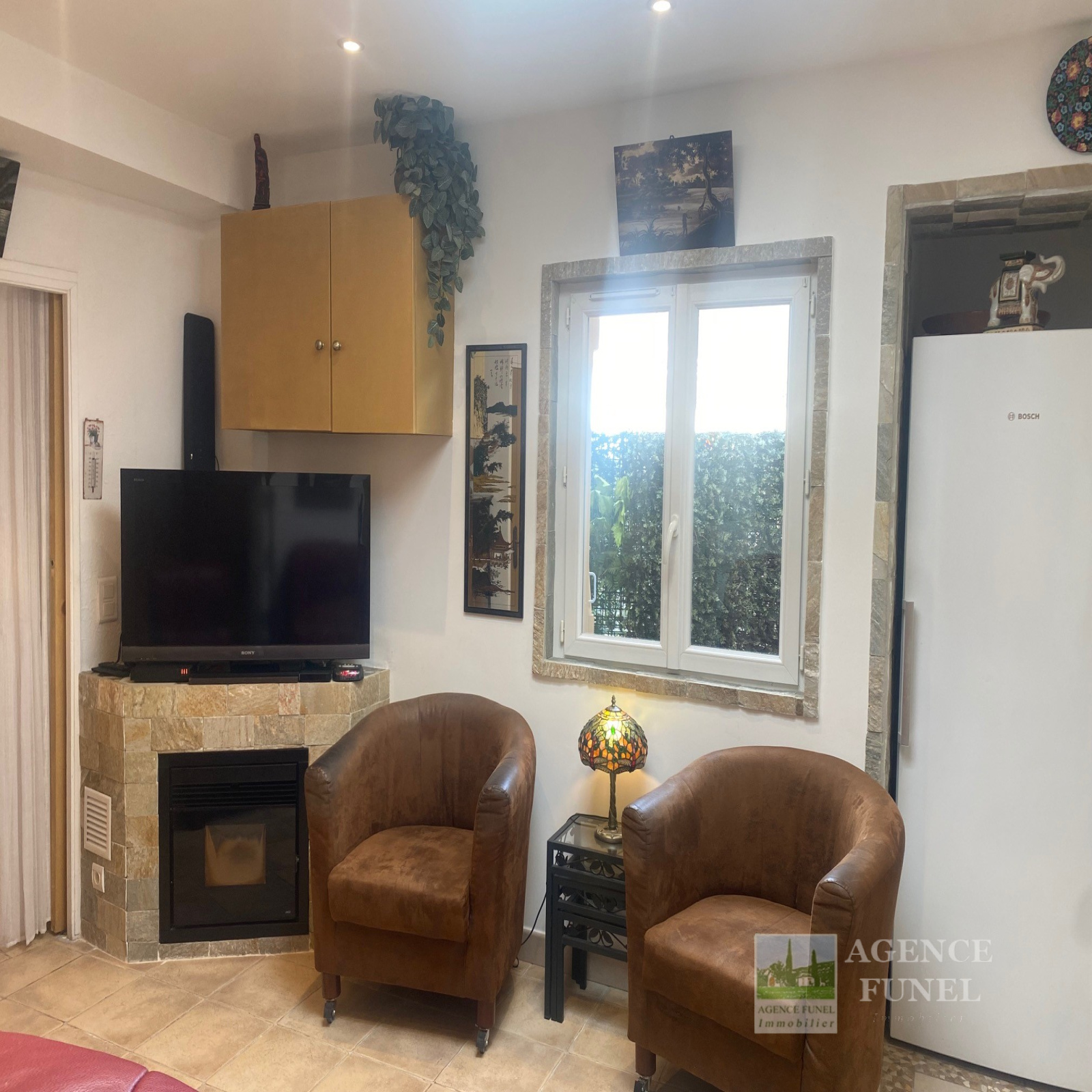 Idéalement située au Coeur du Village, Charmante Maisonnette Individuelle de Plain-pied, Excellent état, lumineuse se composant de : Entrée sur loggia fermée, Cuisine équipée, Salon avec poêle à granulés et climatisation réversible, 1 Chambre avec climatisation réversible, Salle d'eau avec Wc. Terrasse.