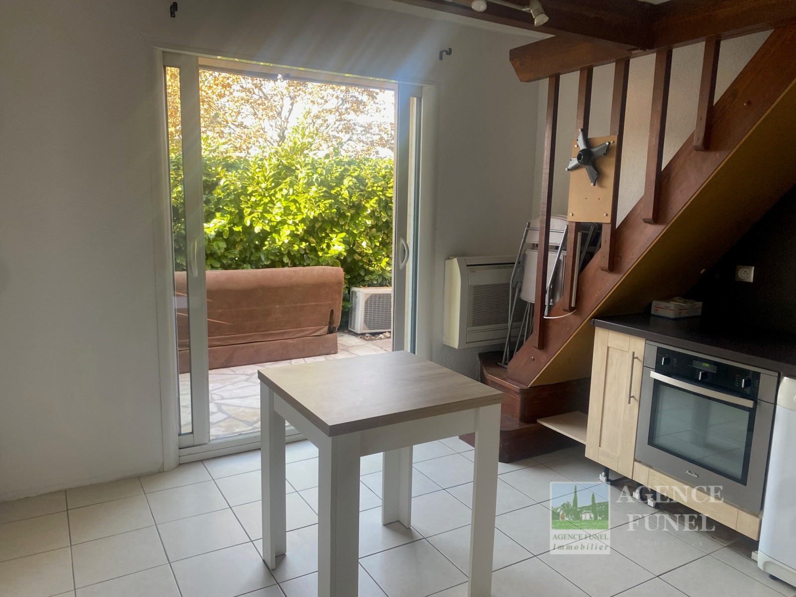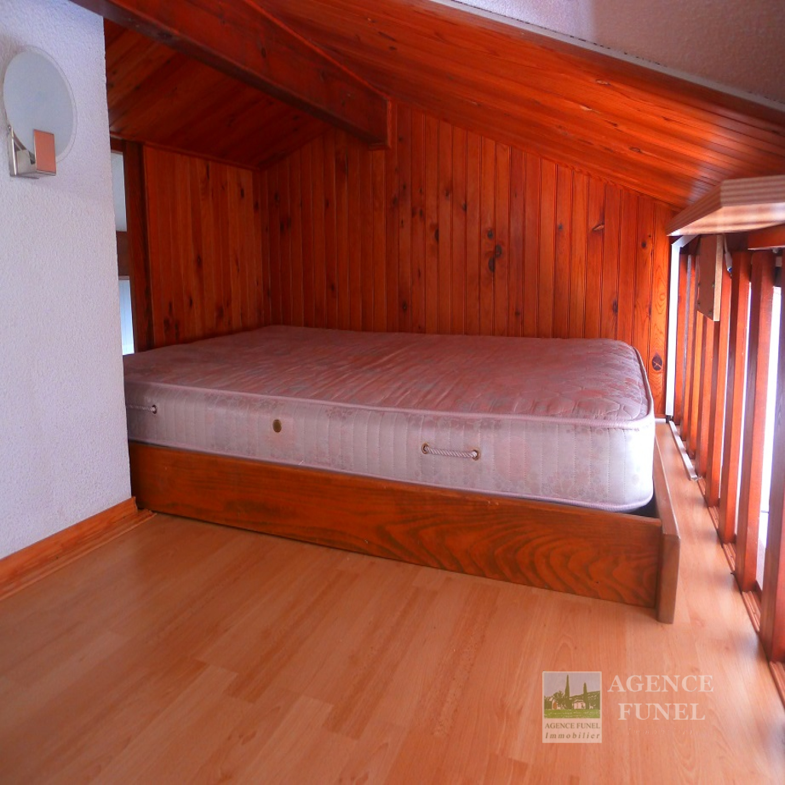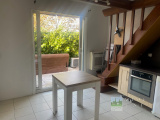 Dans Résidence avec Piscine et Tennis, Très Agréable Studio - Mezzanine, jumelé d'1 seul coté., composé de Entrée-dégagement, Pièce de vie avec coin cuisine équipé ouvrant sur Terrasse avec Baie vitrée en galandage, salle d'eau avec Wc, Mezzanine avec couchages.