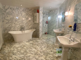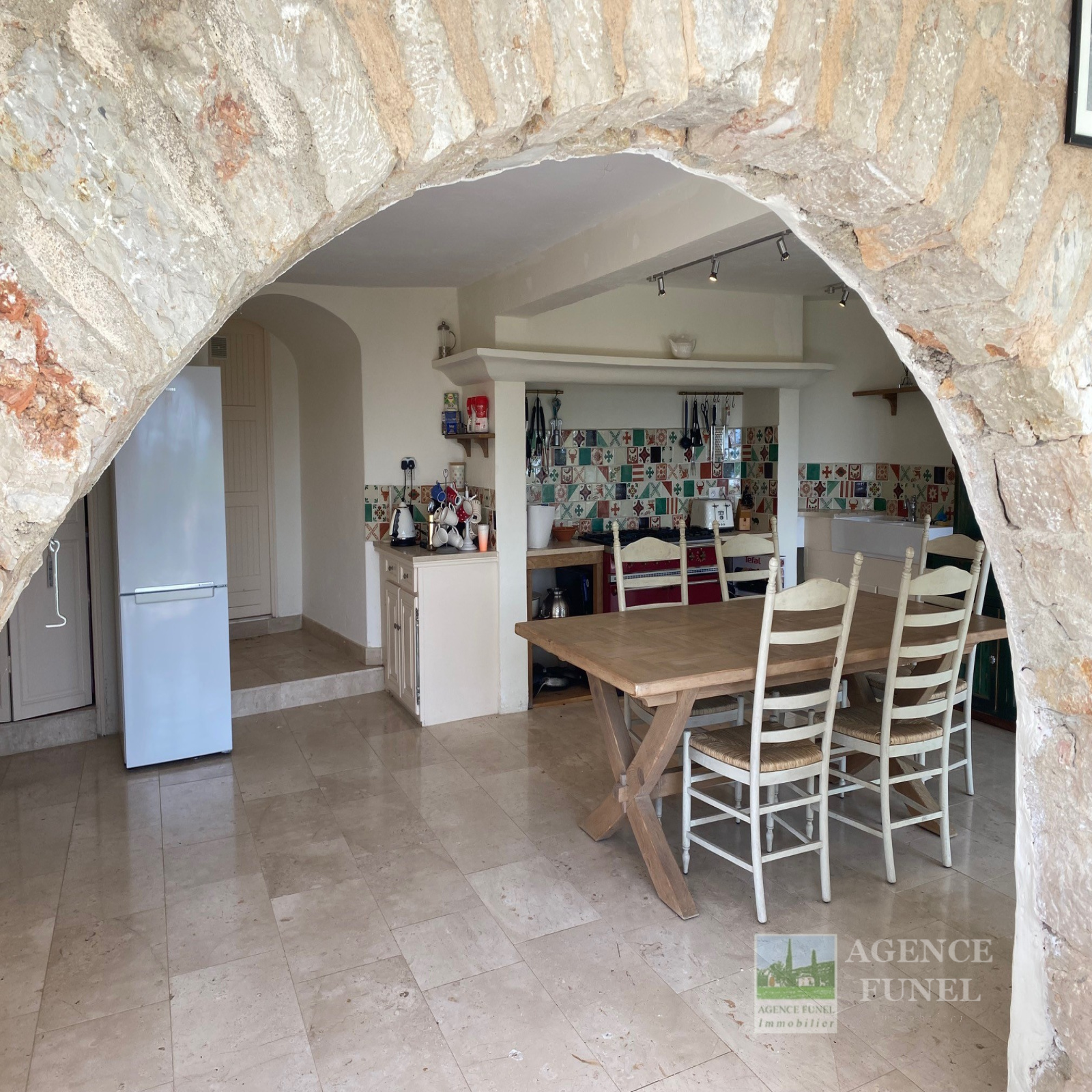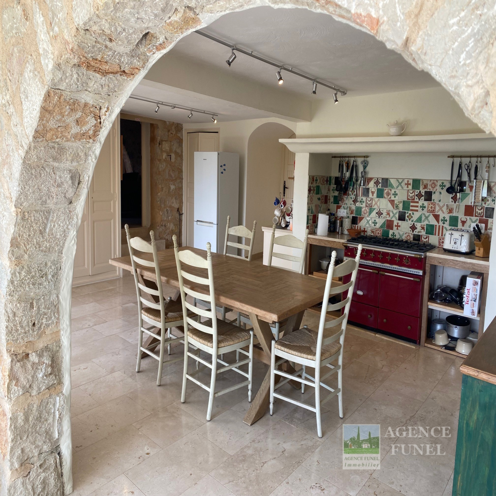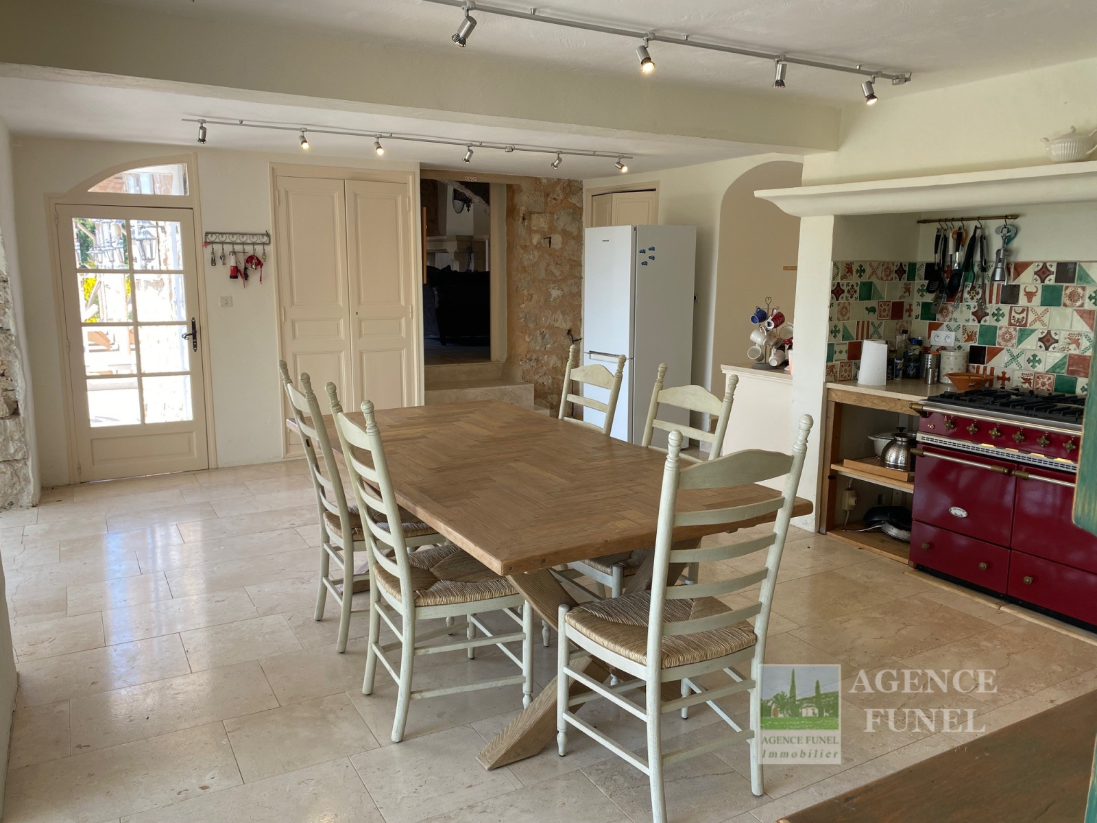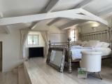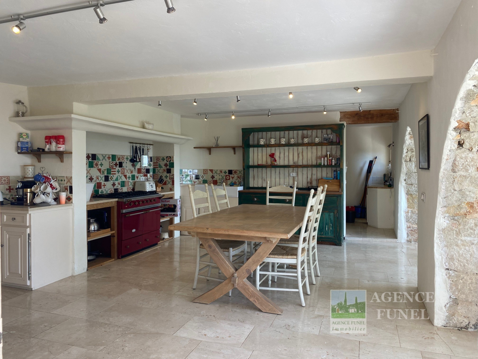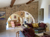 Entrée sur Vaste Vaste Réception avec Cheminée-insert et Poêle à bois (Voutes en pierres), Jolie Cuisine équipée avec Salle à manger (Voutes en pierres), Cellier, Wc. 1 grande Buanderie, 2 chambres + 1 Chambre attenante, 3 Salles de bains avec Wc.