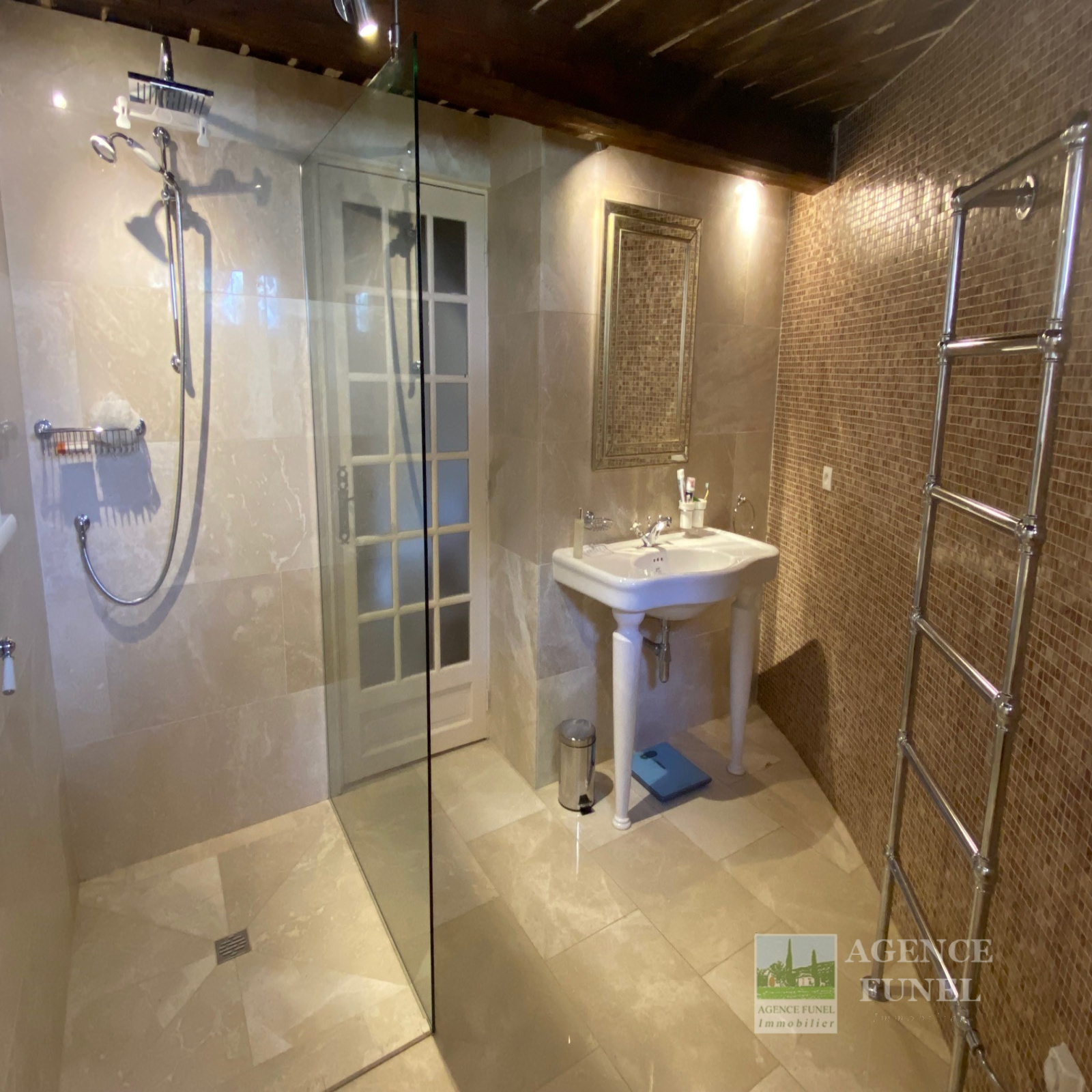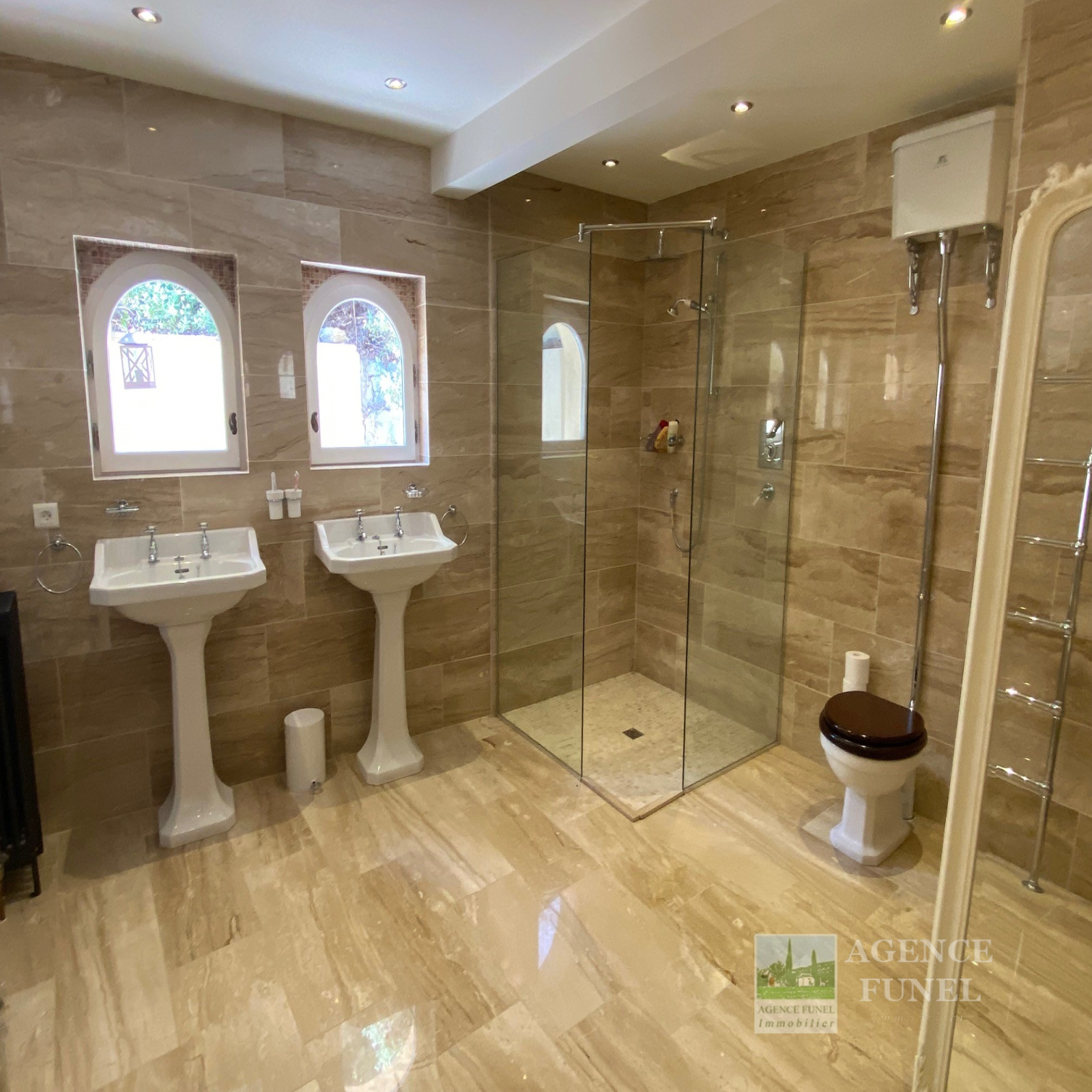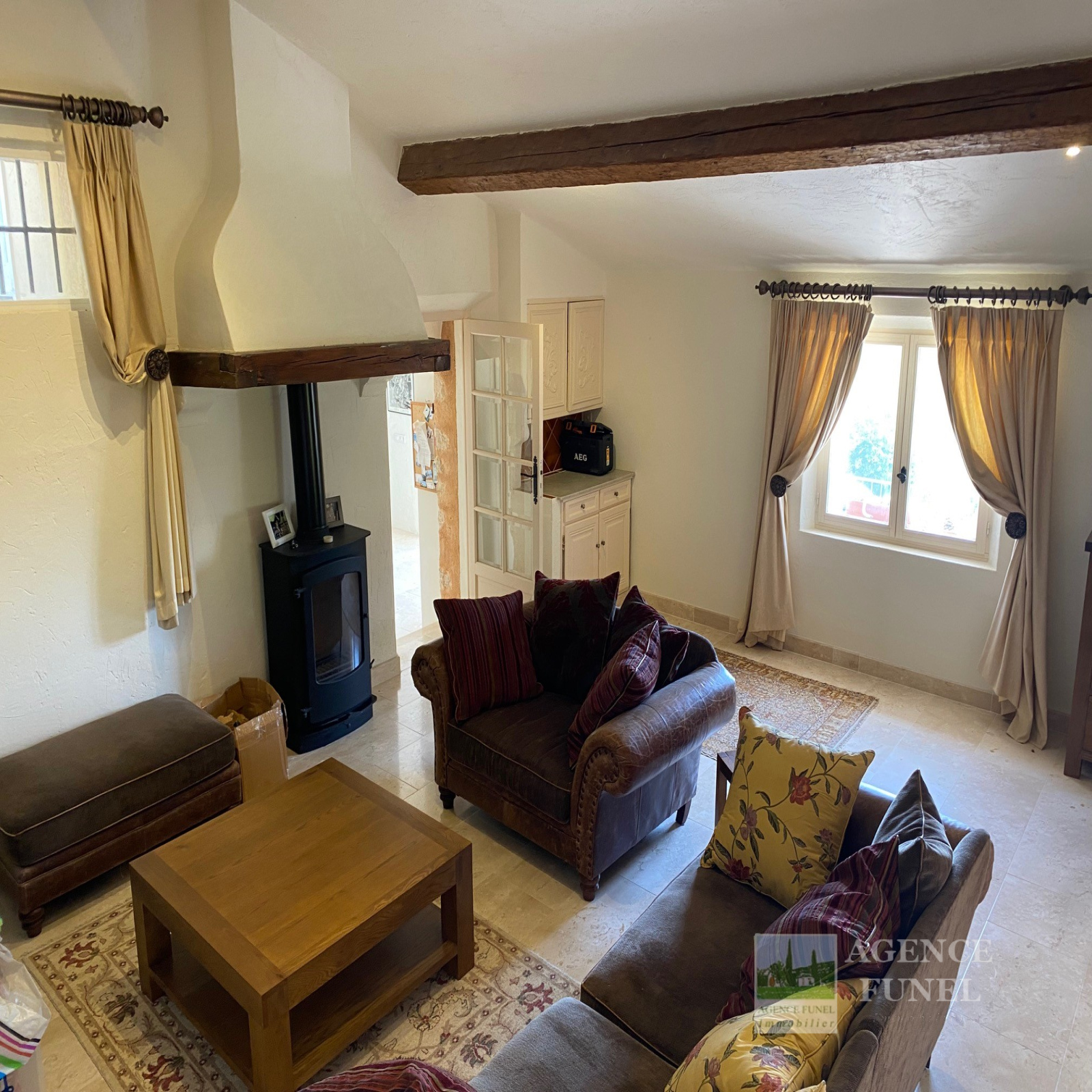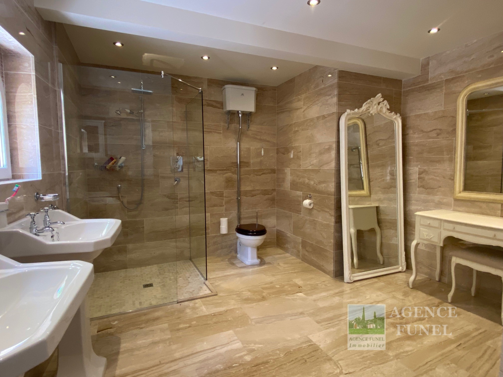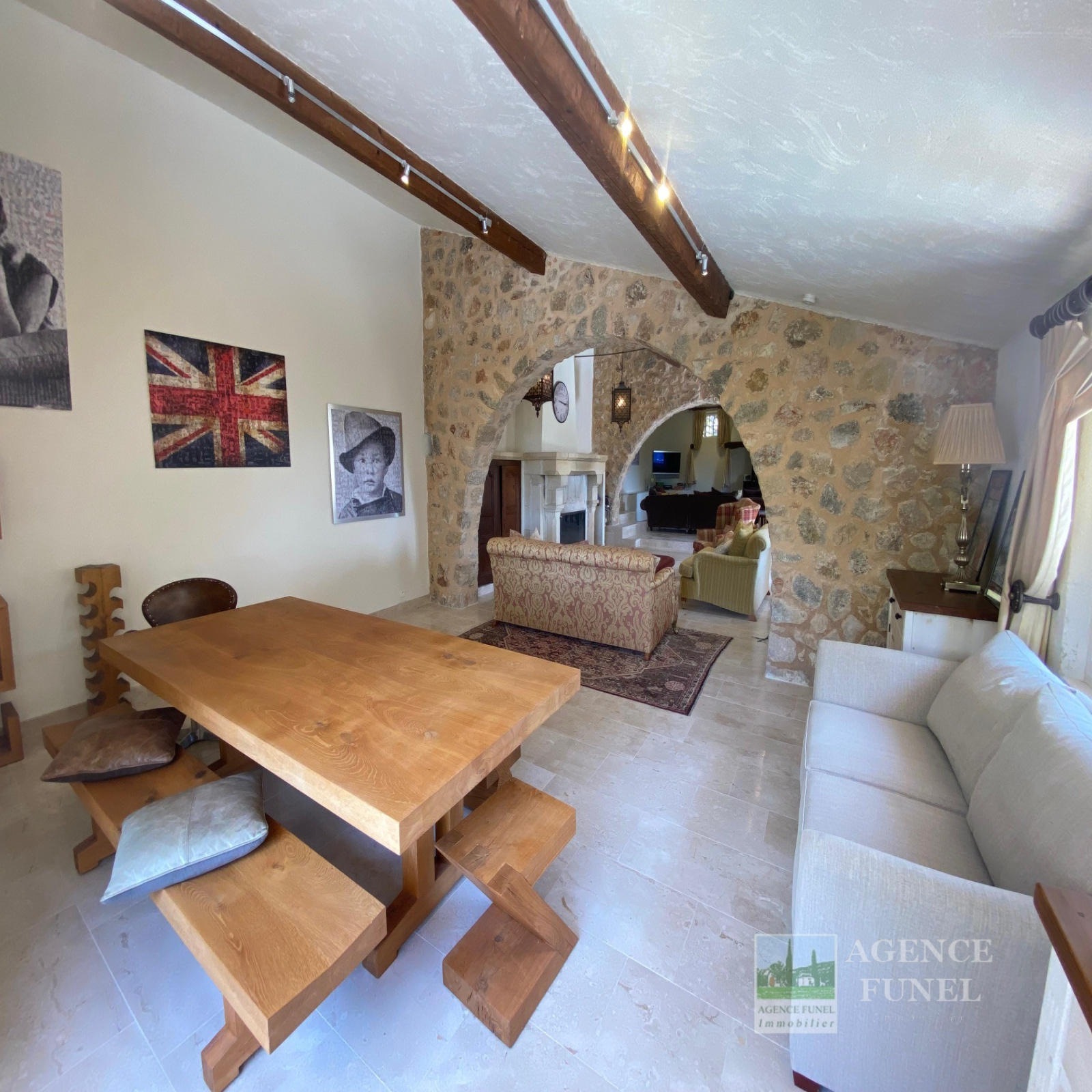 Entrée sur Vaste Vaste Réception avec Cheminée-insert et Poêle à bois (Voutes en pierres), Jolie Cuisine équipée avec Salle à manger (Voutes en pierres), Cellier, Wc. 1 grande Buanderie, 2 chambres + 1 Chambre attenante, 3 Salles de bains avec Wc.