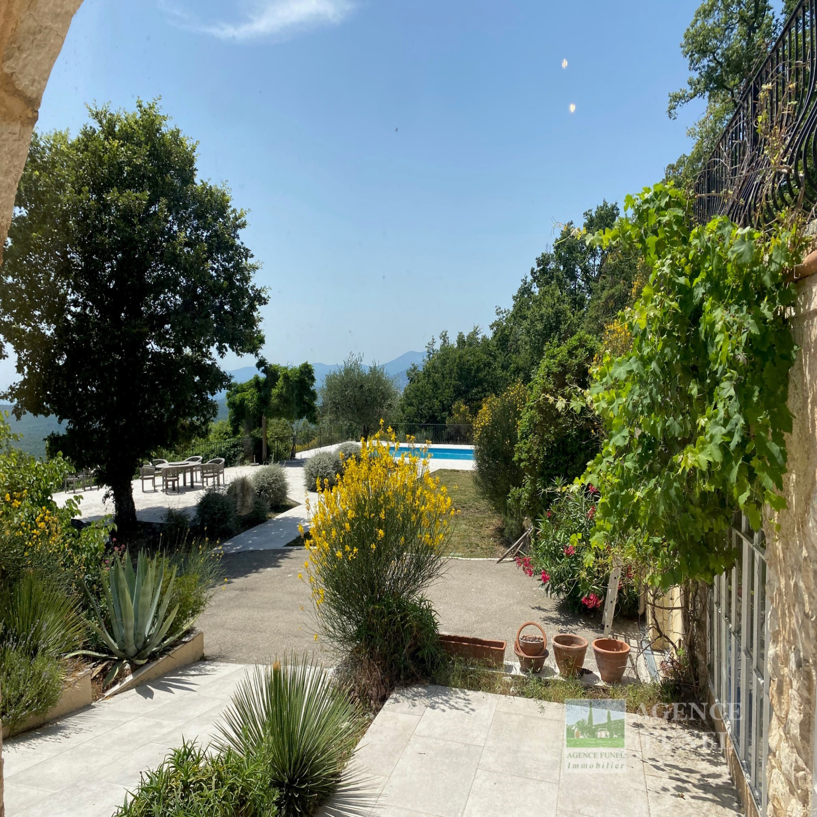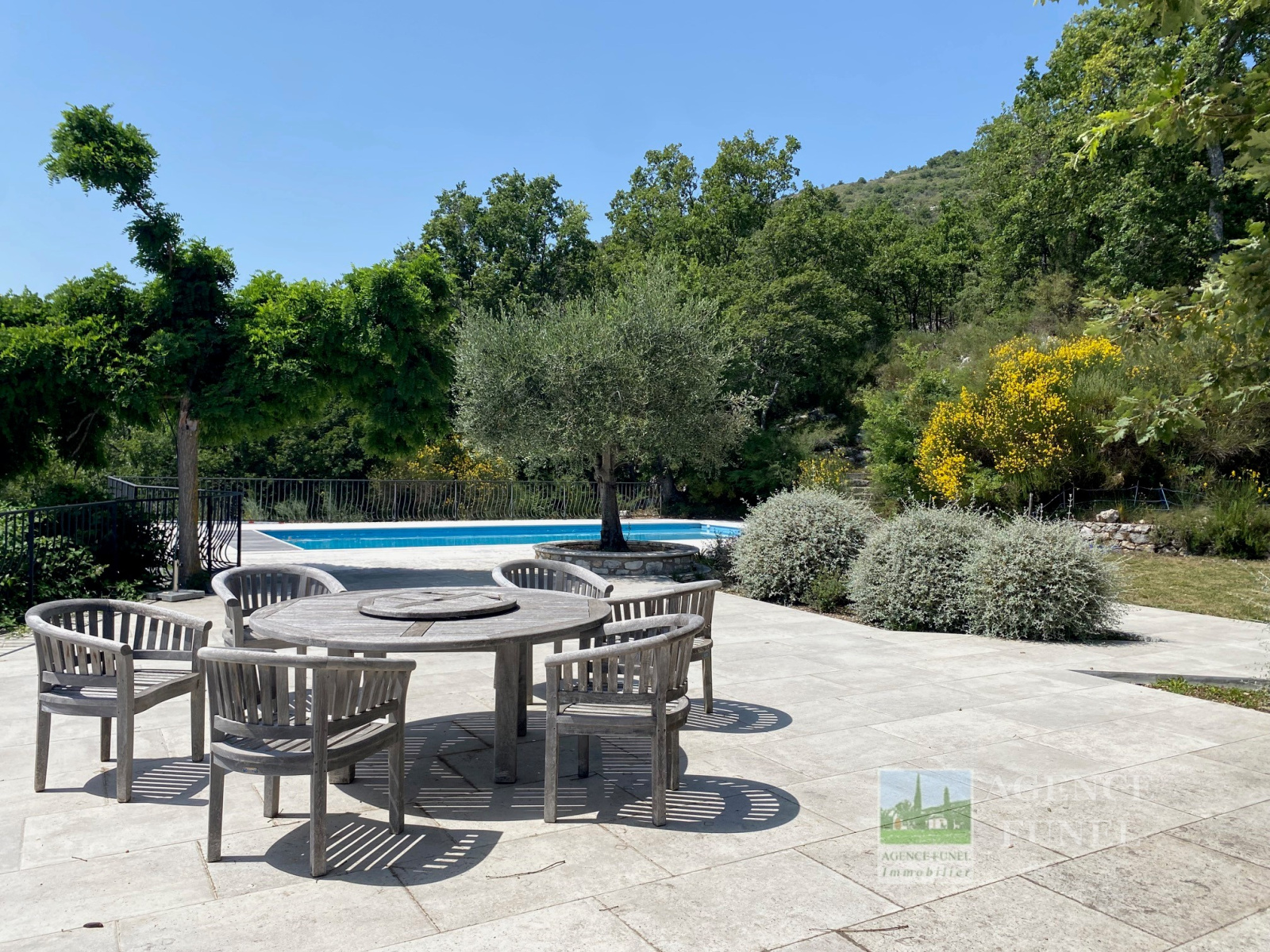 Terrain attenant de + de 10 hectares avec Piscine et Vastes Terrasses extérieures.
