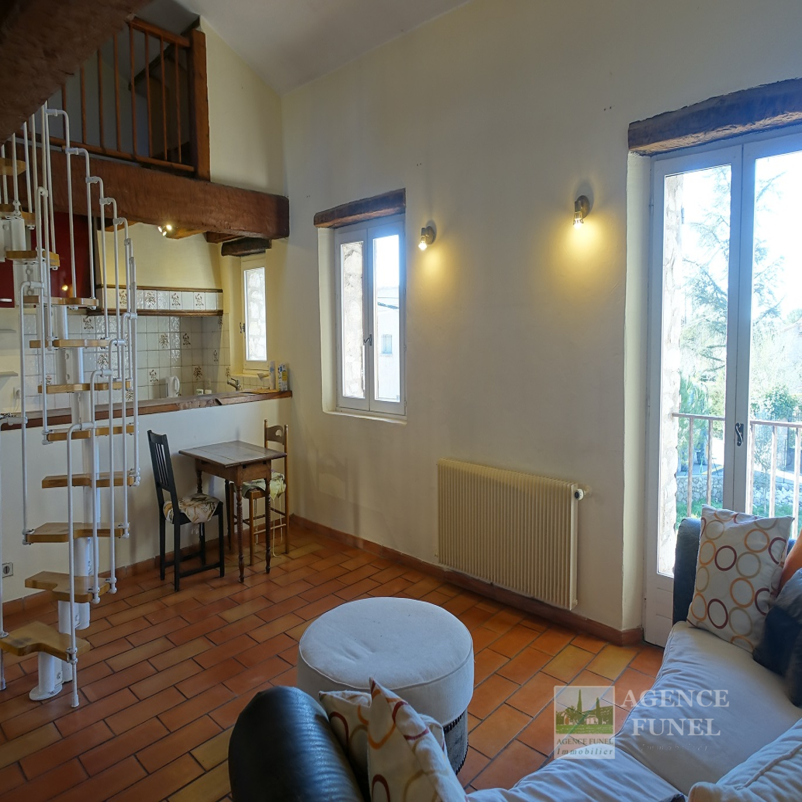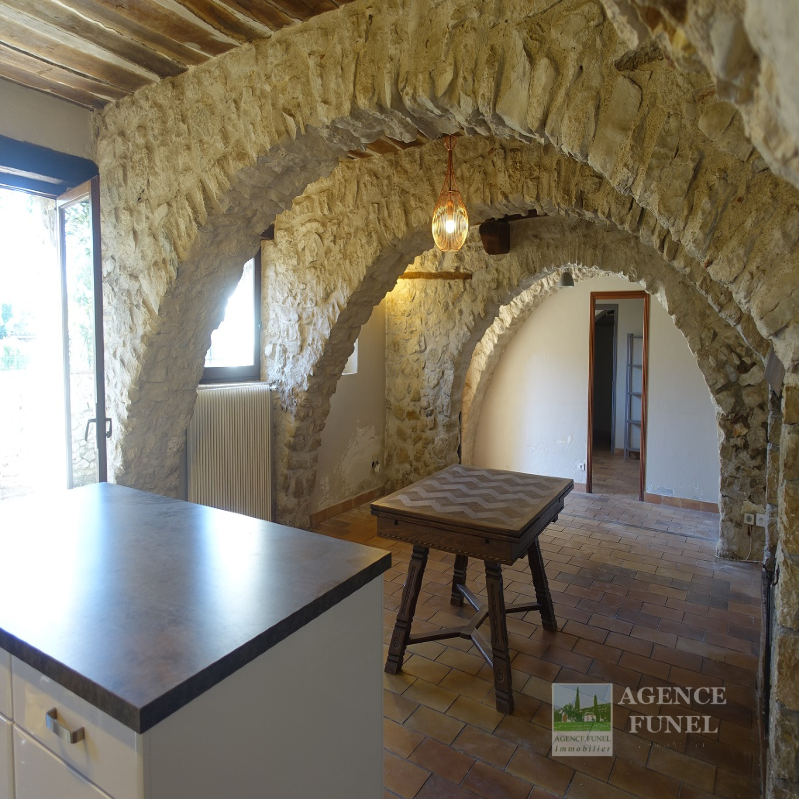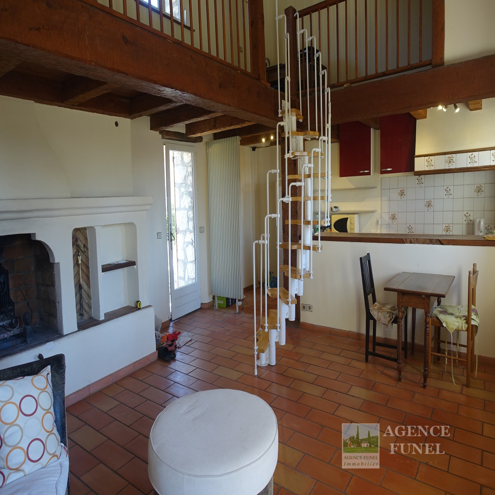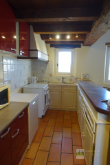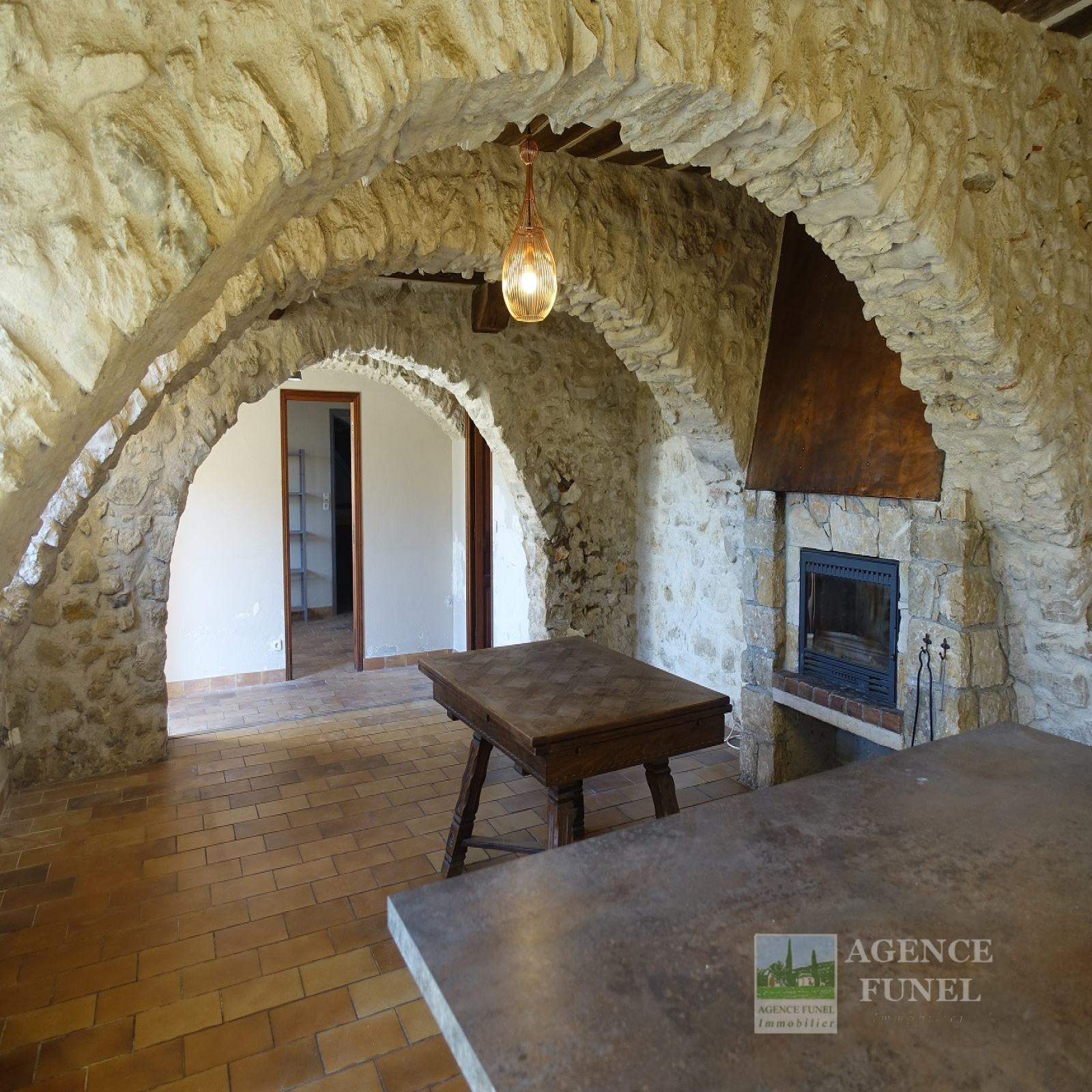- RDJ : Entrée sur Living avec cheminée-insert (Voûtes en Pierres), Cuisine Américaine, 1 Chambre, 1 dressing, Salle d'eau, Wc.