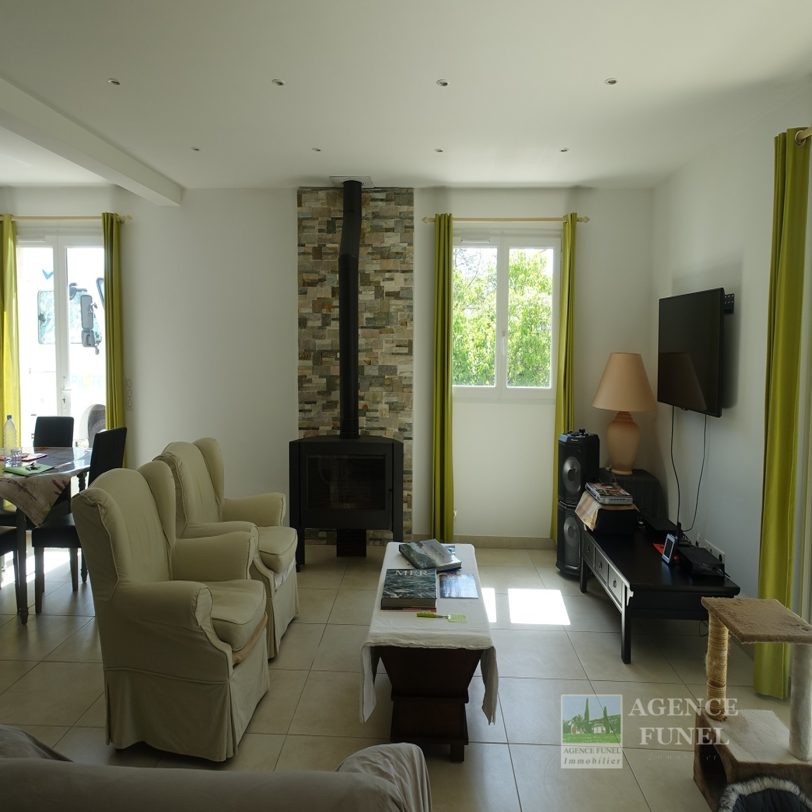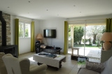 - RDC : Entrée-dégagement, Vaste Living avec Cheminée-insert et Salle à manger, Cuisine équipée, Cellier-buanderie ouvrant sur une Petite cour intérieure, Wc indépendant.