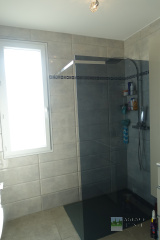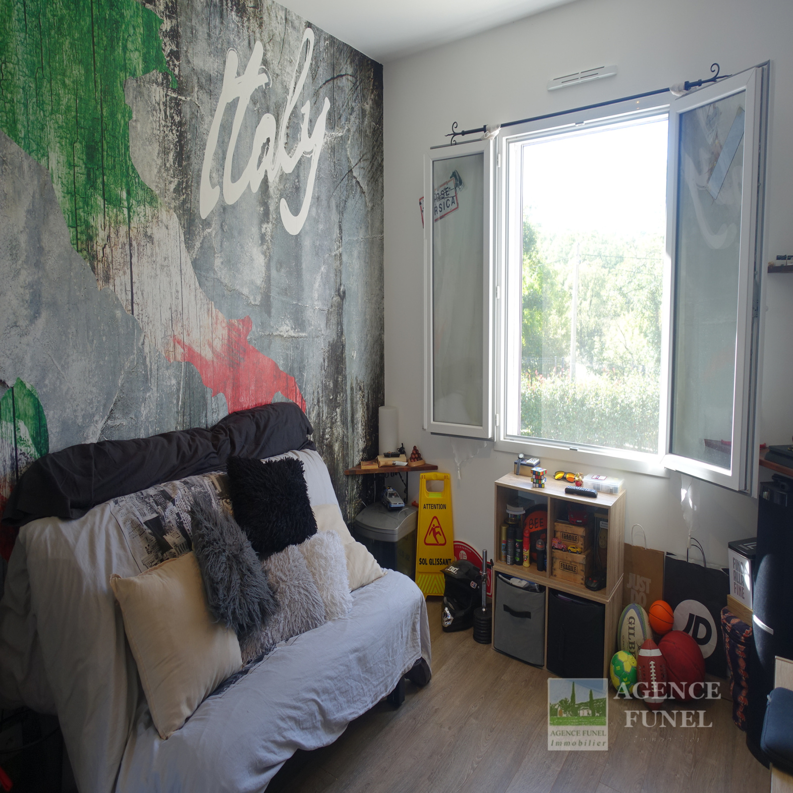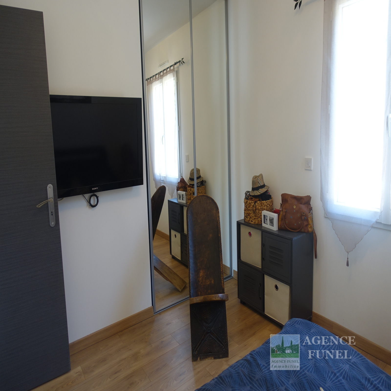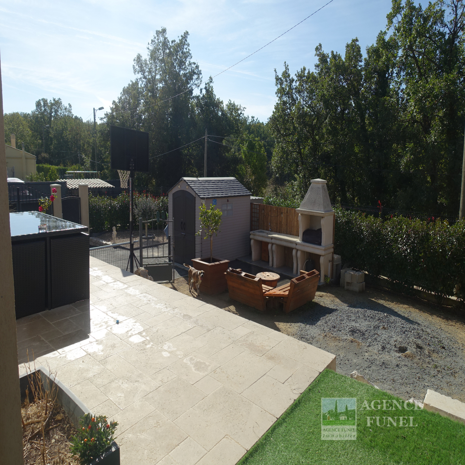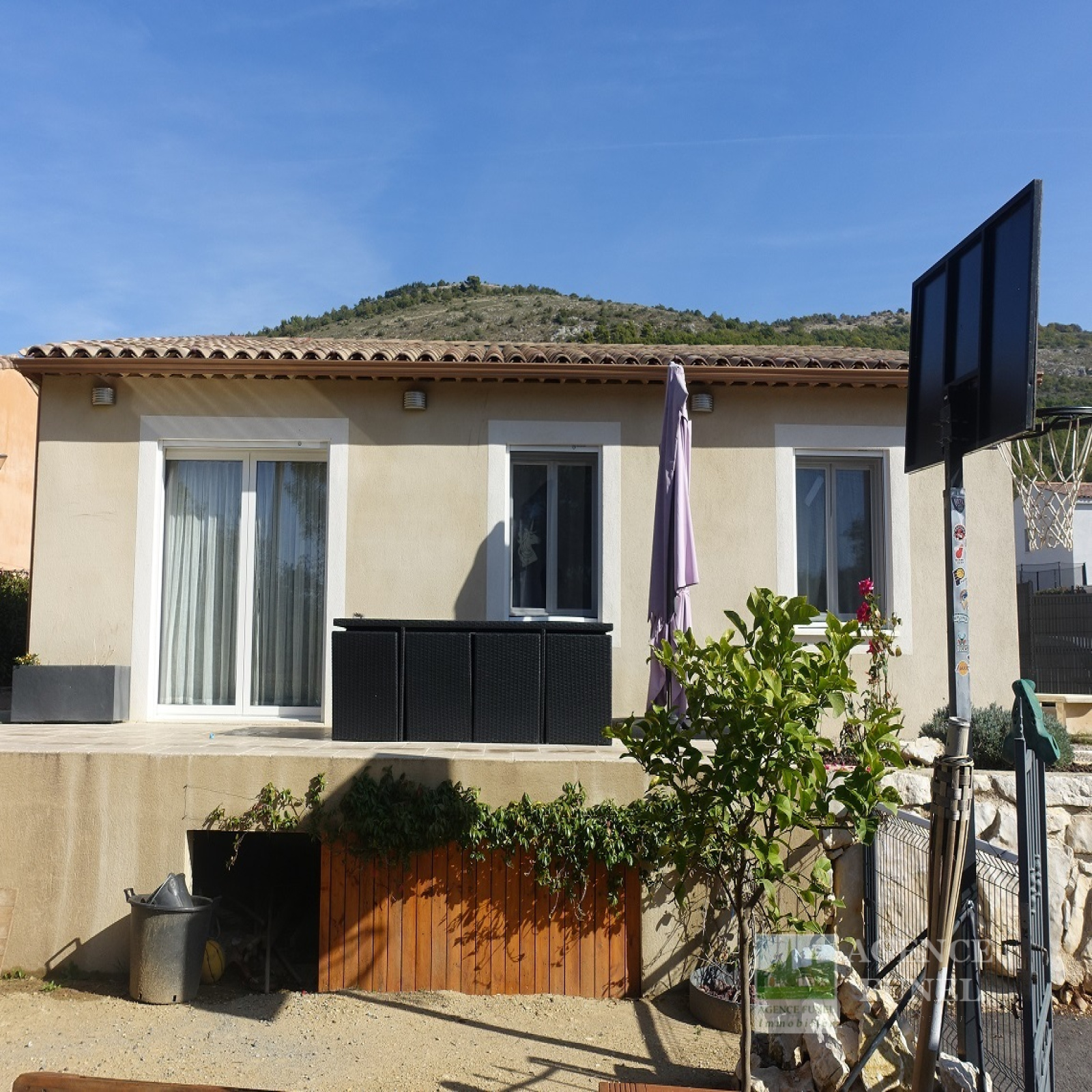 Proche Village, Très Jolie Villa Individuelle de Plain-pied, fonctionnelle, construite en 2017, se composant de : Entrée sur Salon avec Cuisine américaine aménagée, dégagement, 3 Chambres avec Placards, Salle d'eau, Wc.