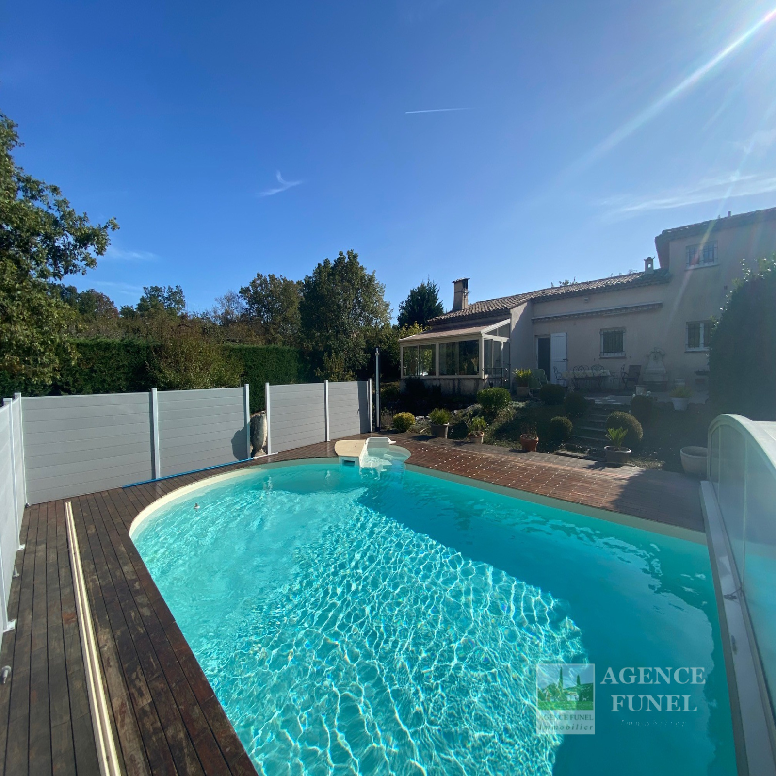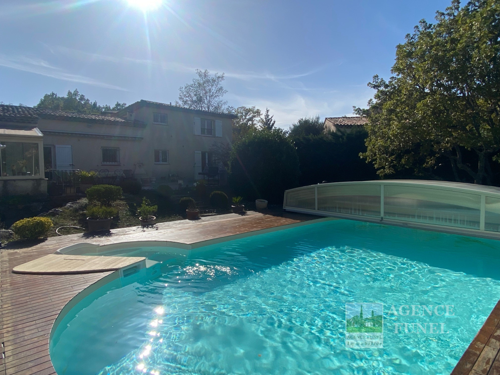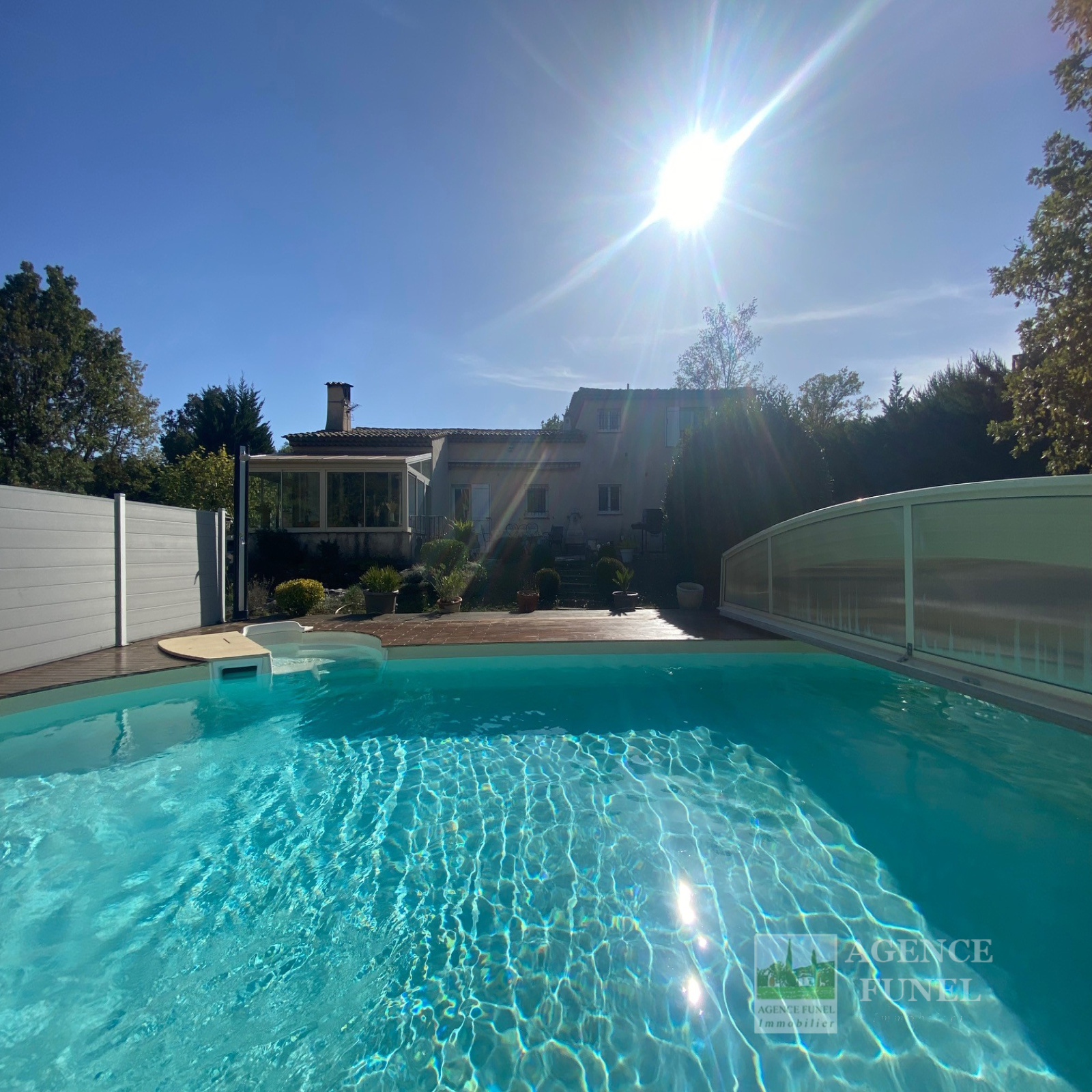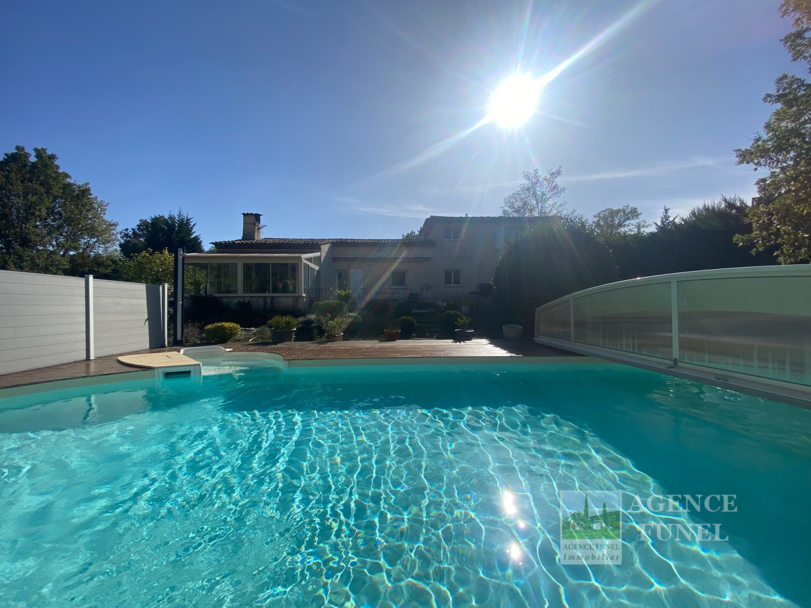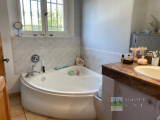 RDC : Entrée-dégagement, Living avec Cheminée-insert, Cuisine aménagée, Véranda fermée donnant sur un très agréable jardin complanté et Plat, avec jolie Piscine équipée d'un système balnéo, 3 Chambres avec placards, Salle d'eau, Salle de bains, Wc indépendant.