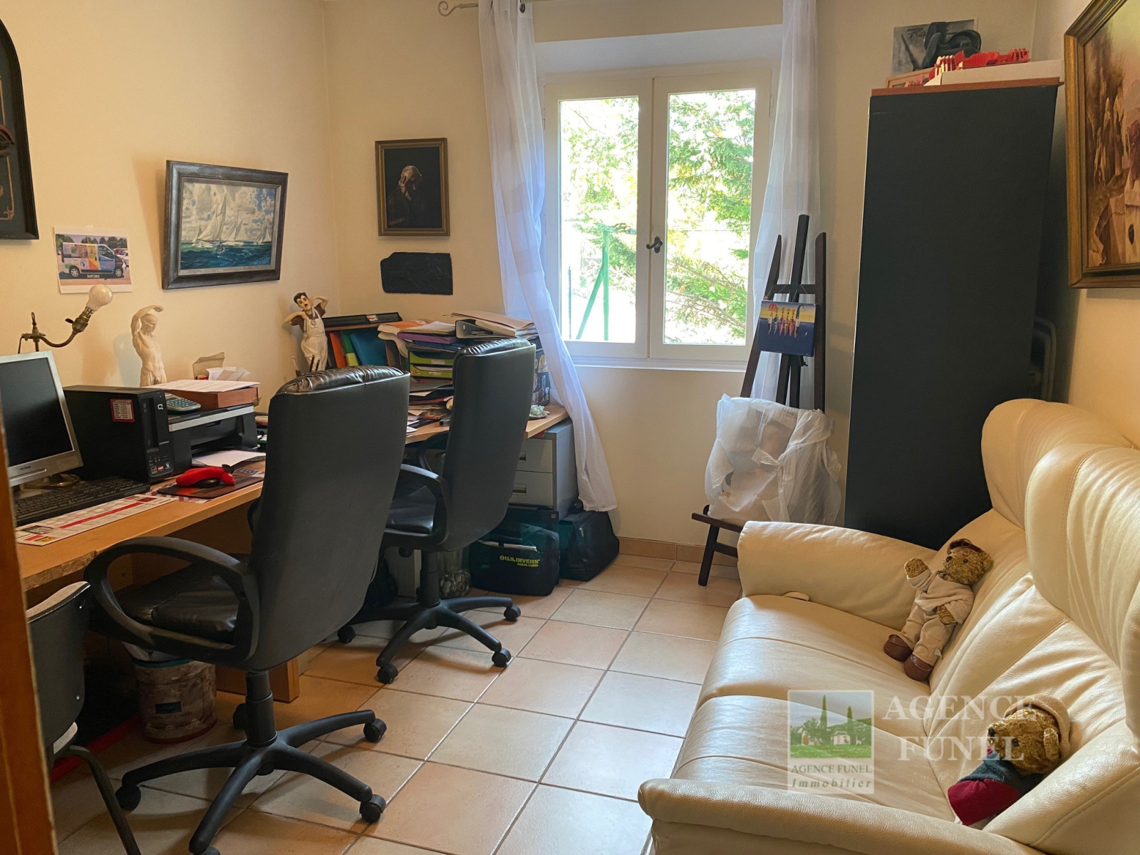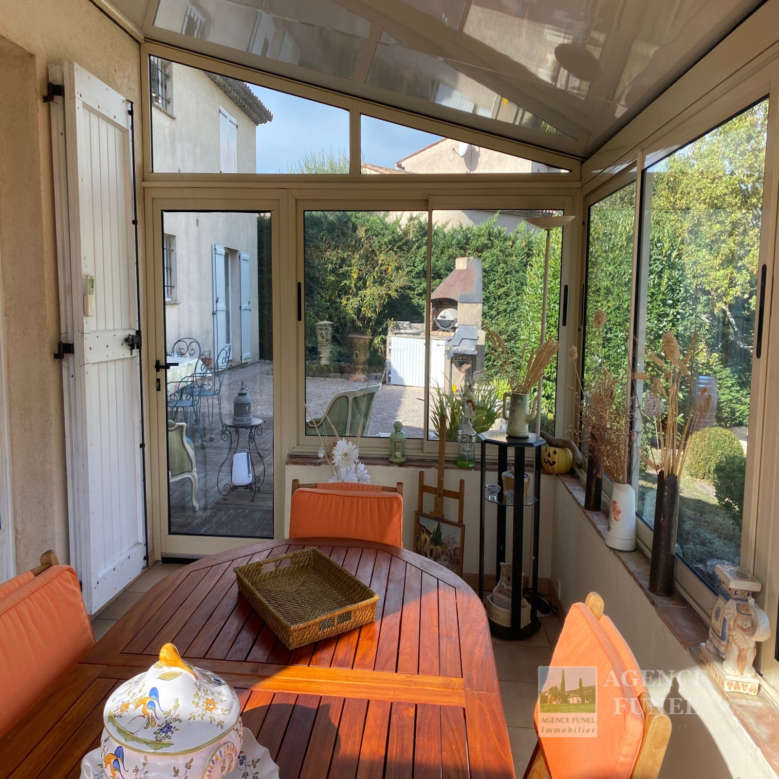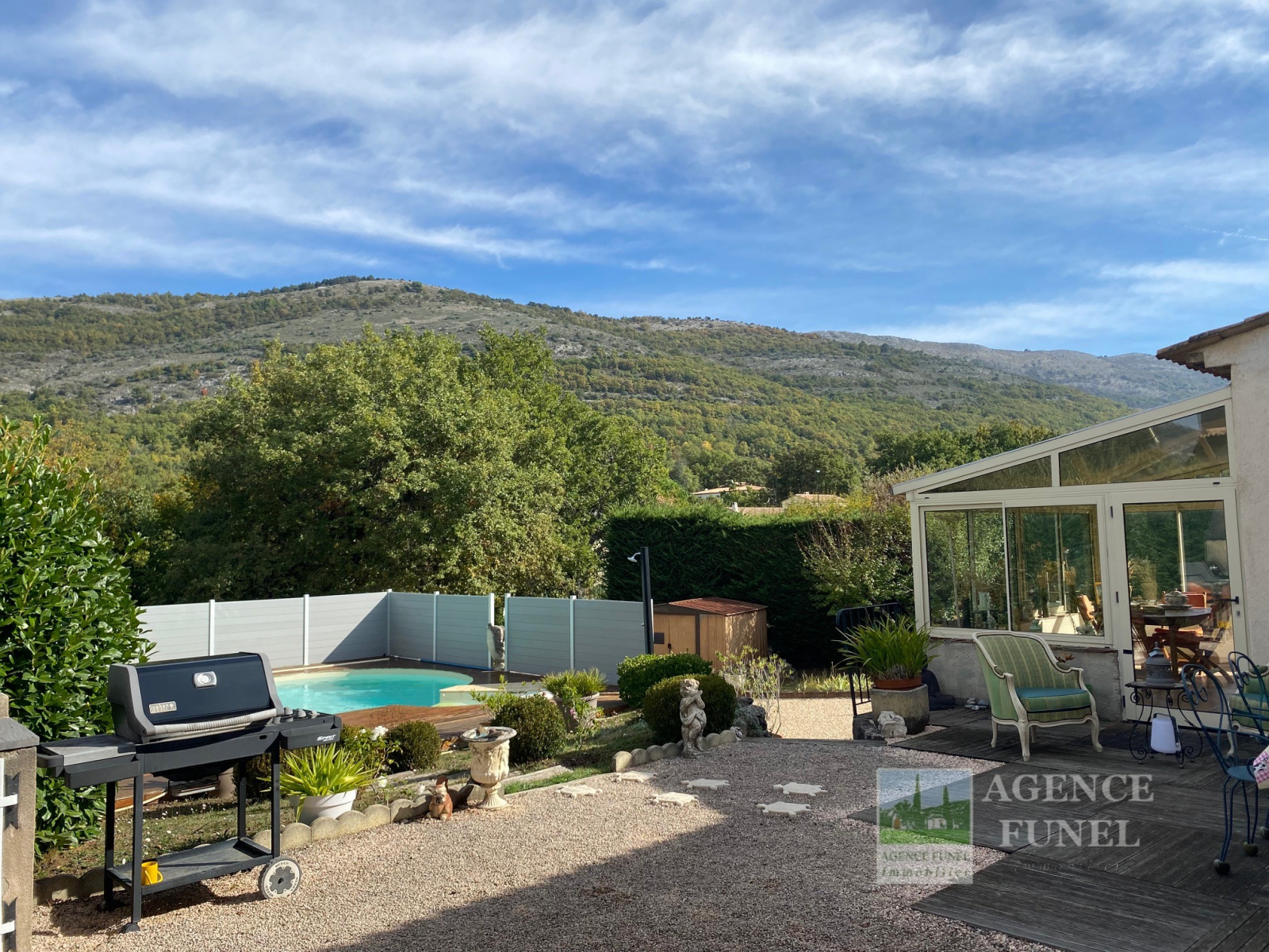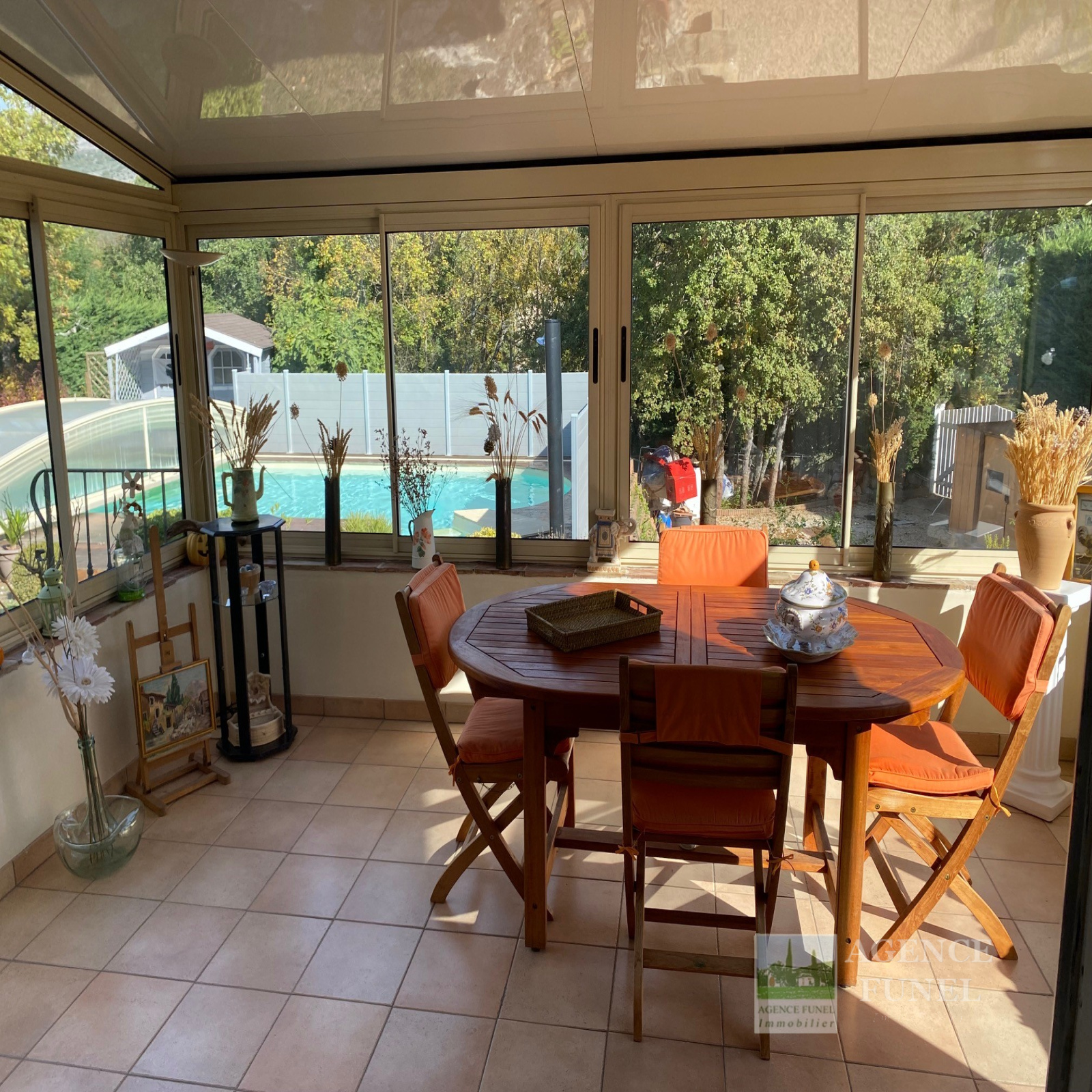 RDC : Entrée-dégagement, Living avec Cheminée-insert, Cuisine aménagée, Véranda fermée donnant sur un très agréable jardin complanté et Plat, avec jolie Piscine équipée d'un système balnéo, 3 Chambres avec placards, Salle d'eau, Salle de bains, Wc indépendant.