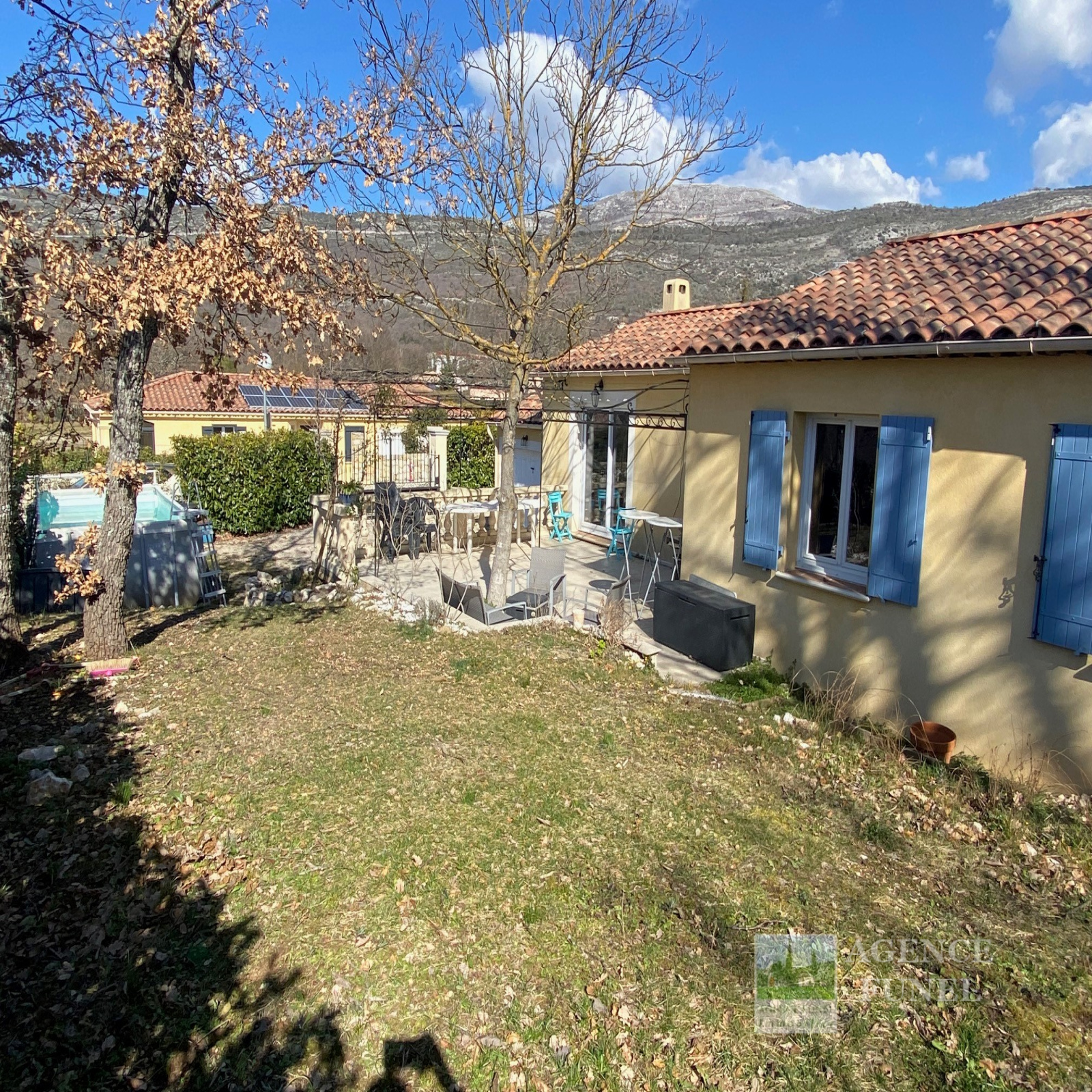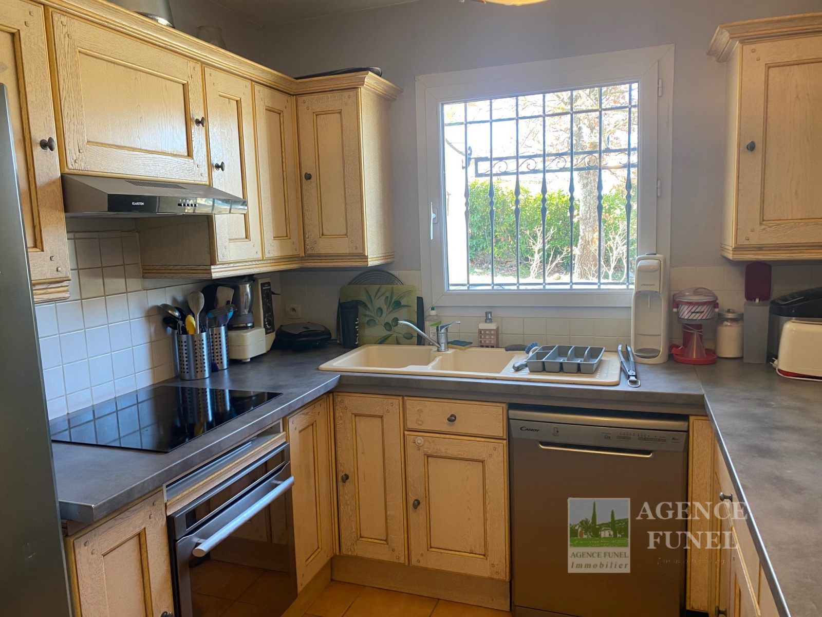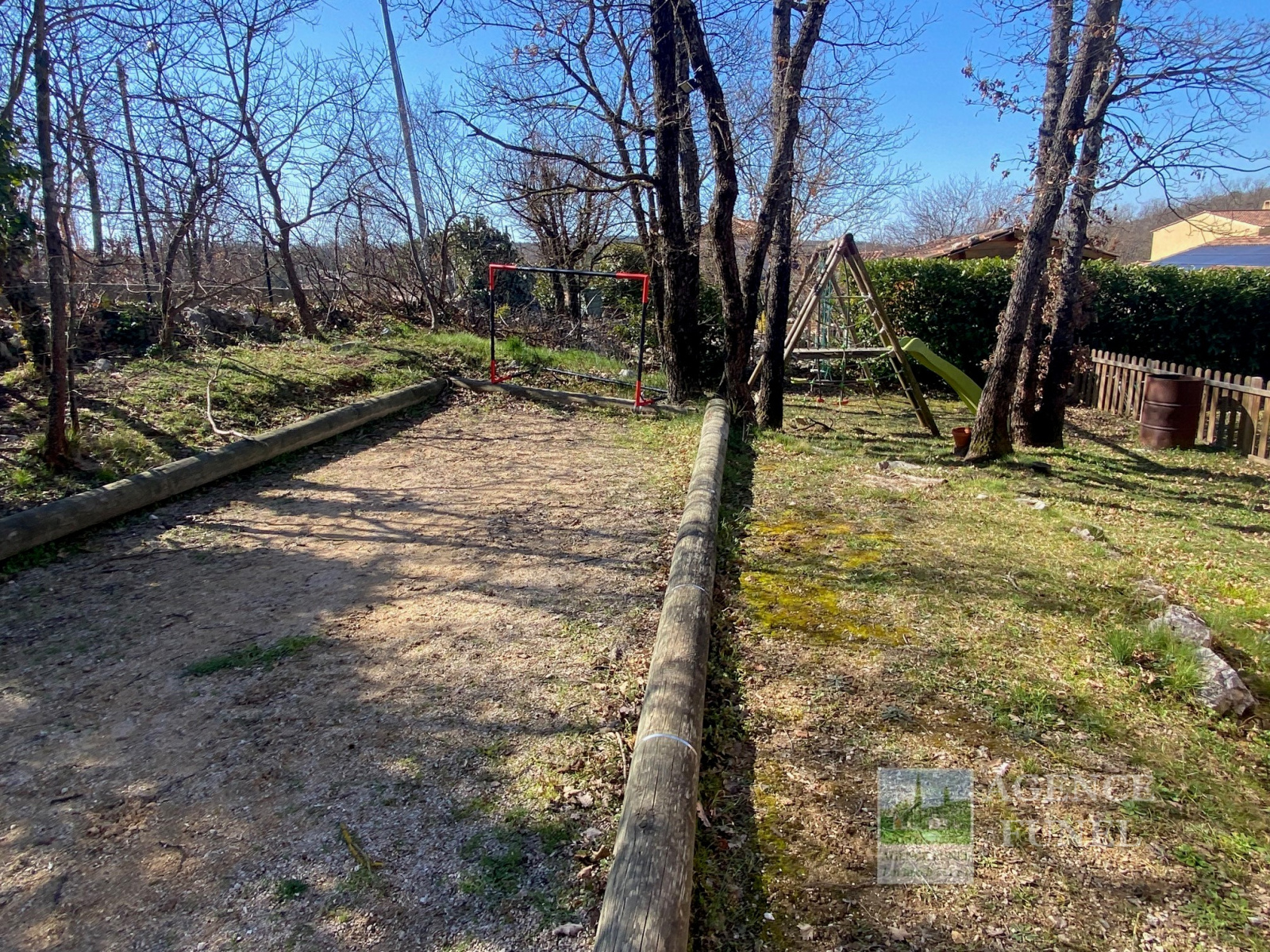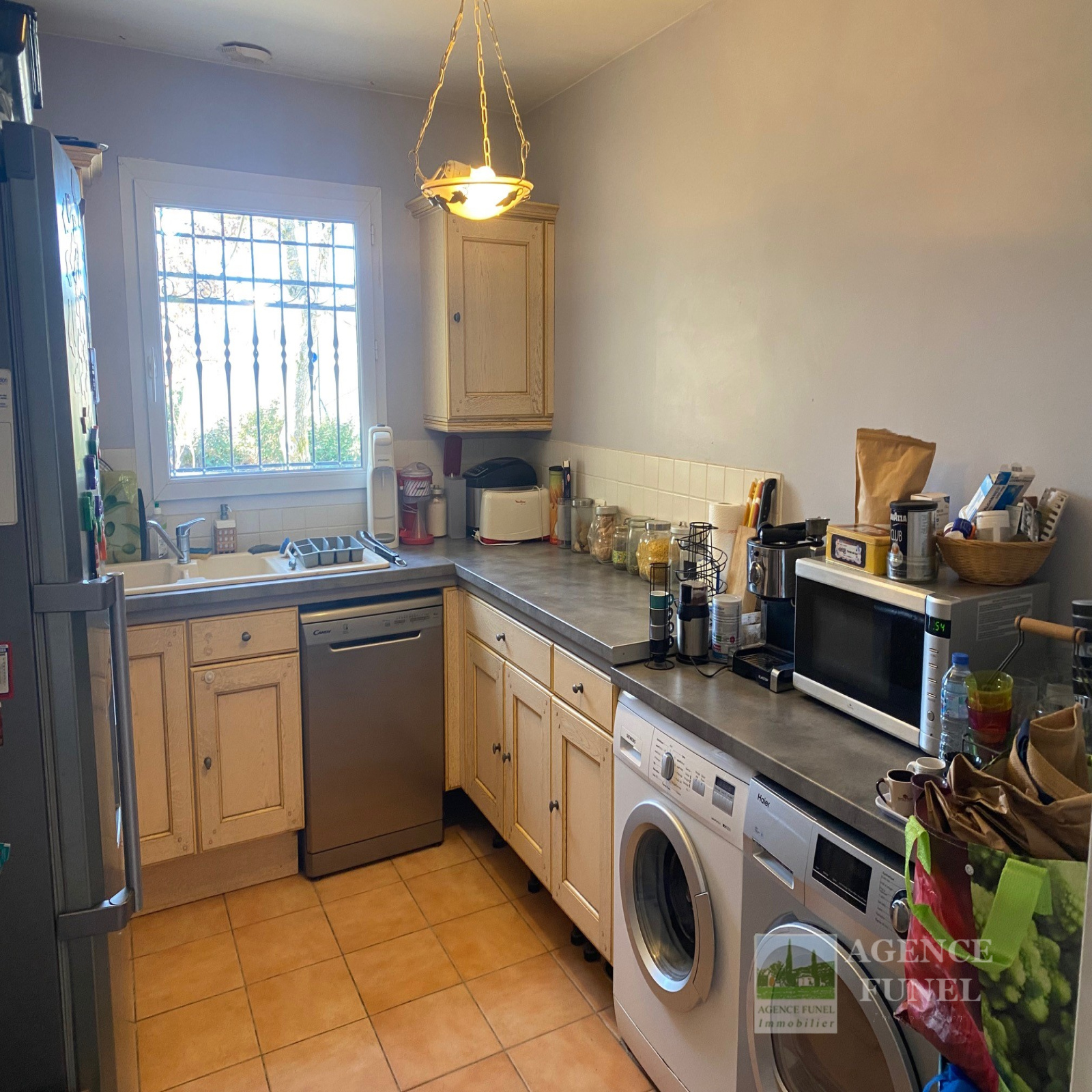Sur 900 m² de Terrain entièrement + Portail automatique, Jolie Villa Individuelle de Plain-pied, très fonctionnelle, se composant de : Entrée-dégagement, Living avec cheminée-insert, Cuisine aménagée, dégagement avec placards, Salle d'eau, Wc, 3 Chambres.