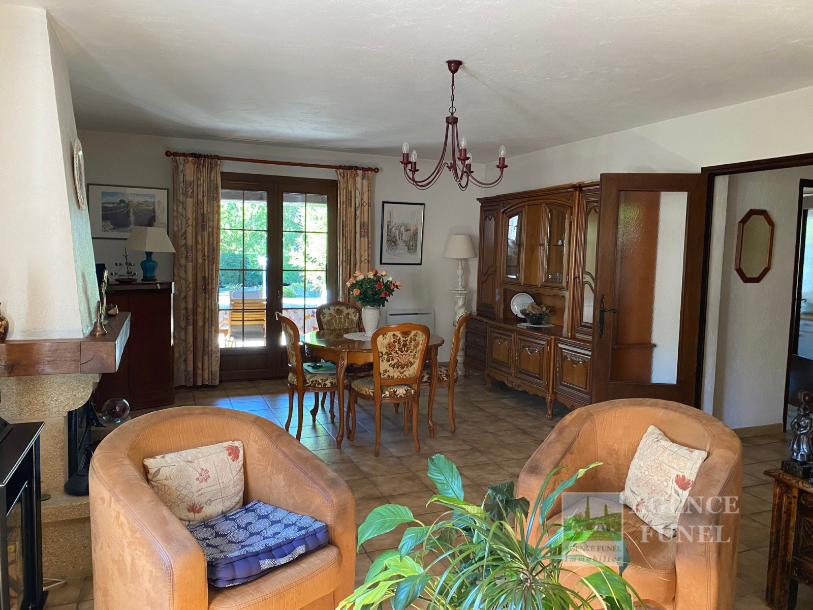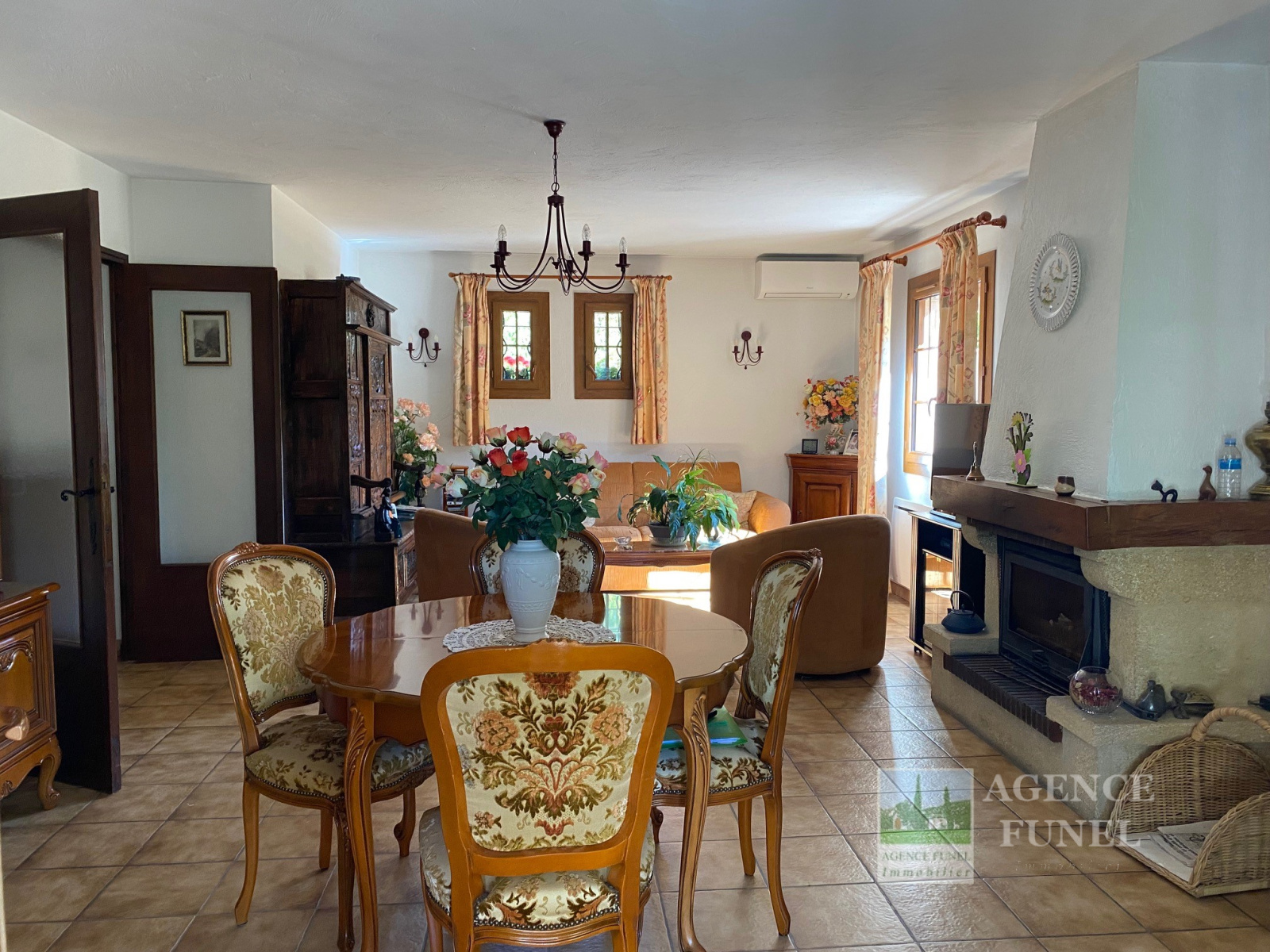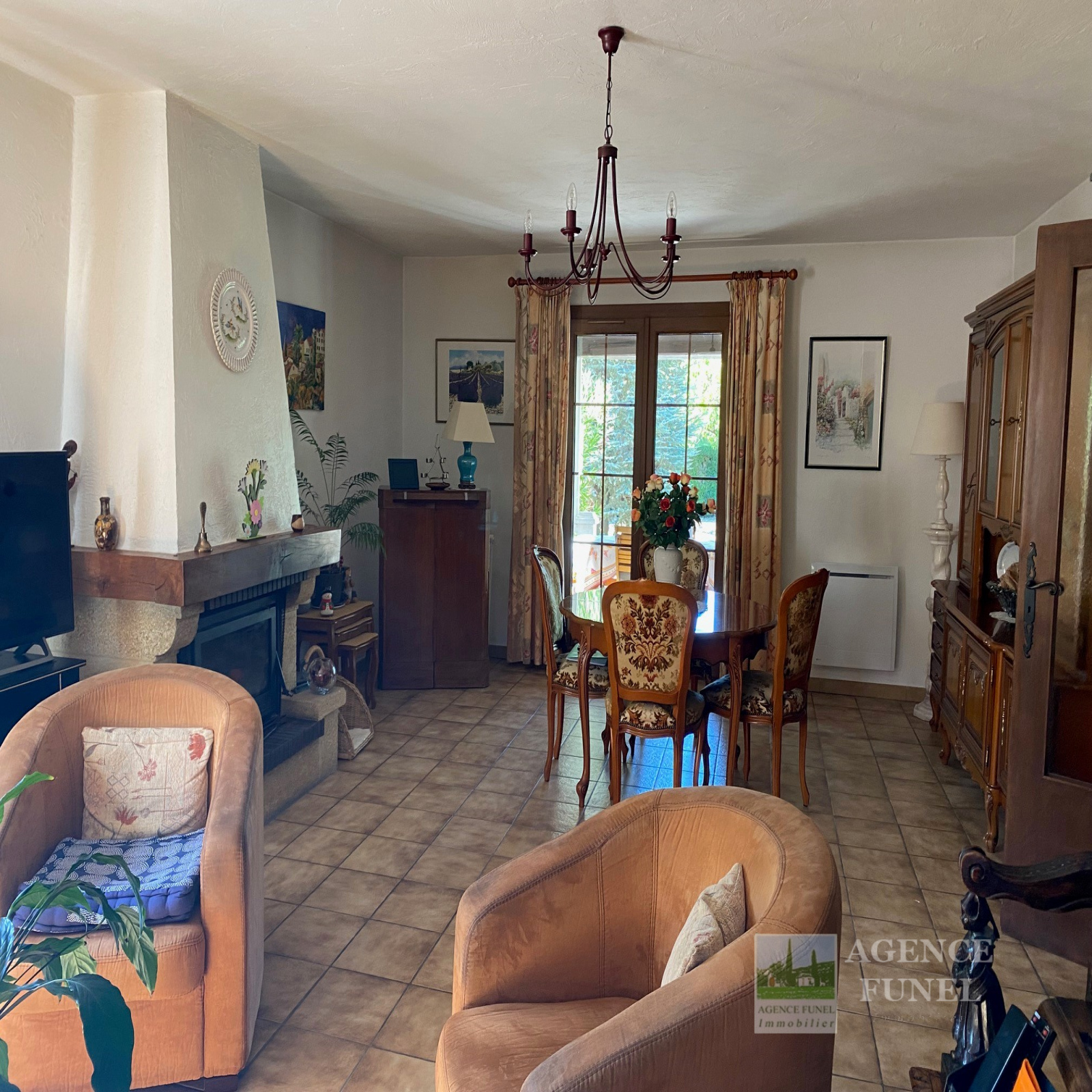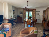 Située à Proximité de Toutes Commodités, Très Jolie Villa Individuelle de Plain-pied, très fonctionnelle, composée de : Entrée-dégagement, Salon - Salle à manger avec Cheminée,-insert, Cuisine avec coin repas, dégagement avec placards, 3 Chambres, Salle de bains, Wc indépendant, 1 Salle d'eau avec Wc.