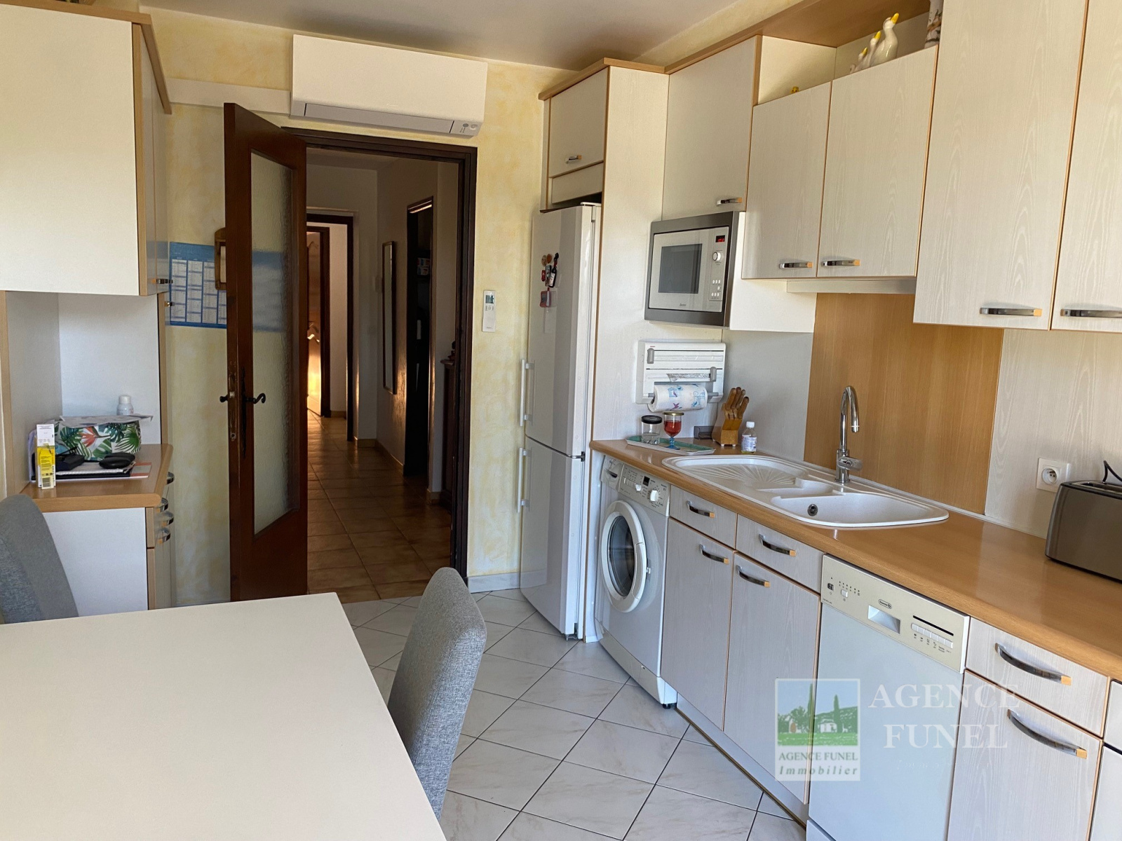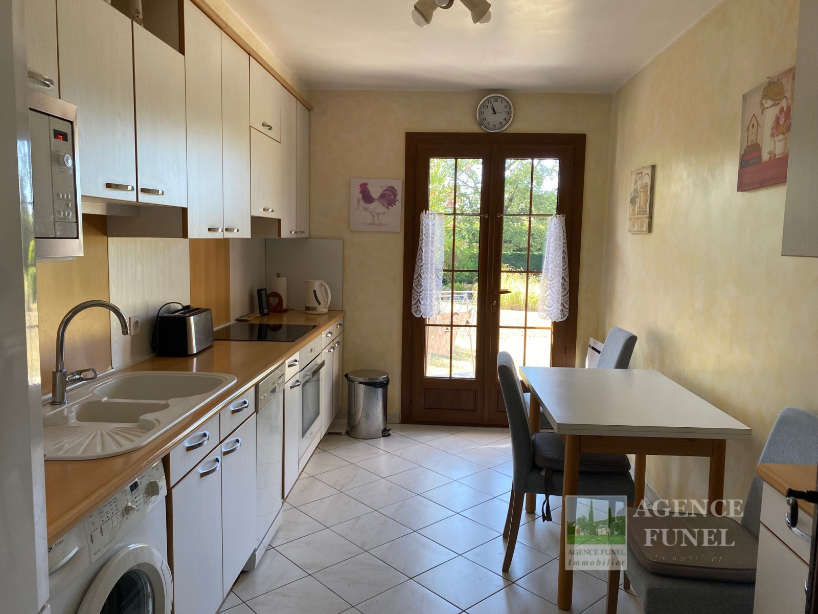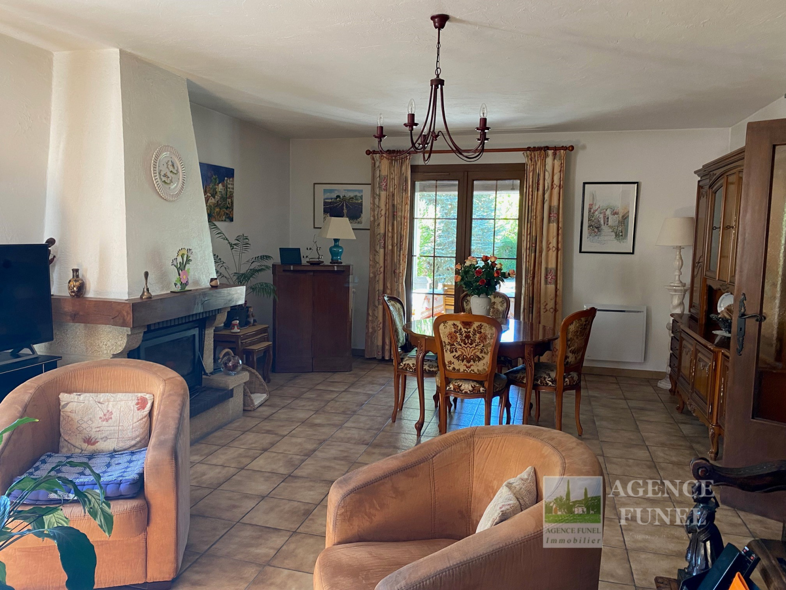 Située à Proximité de Toutes Commodités, Très Jolie Villa Individuelle de Plain-pied, très fonctionnelle, composée de : Entrée-dégagement, Salon - Salle à manger avec Cheminée,-insert, Cuisine avec coin repas, dégagement avec placards, 3 Chambres, Salle de bains, Wc indépendant, 1 Salle d'eau avec Wc.