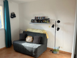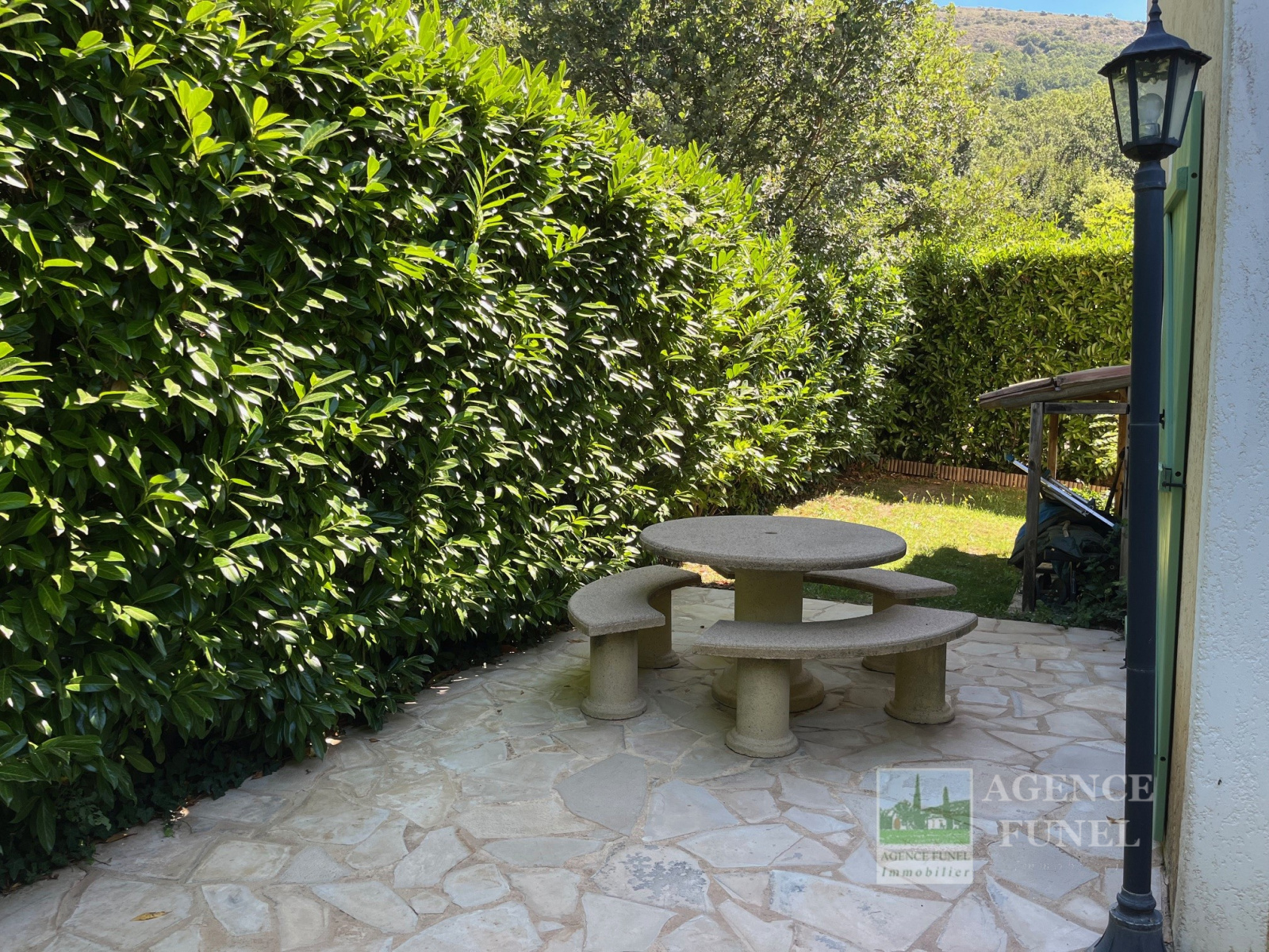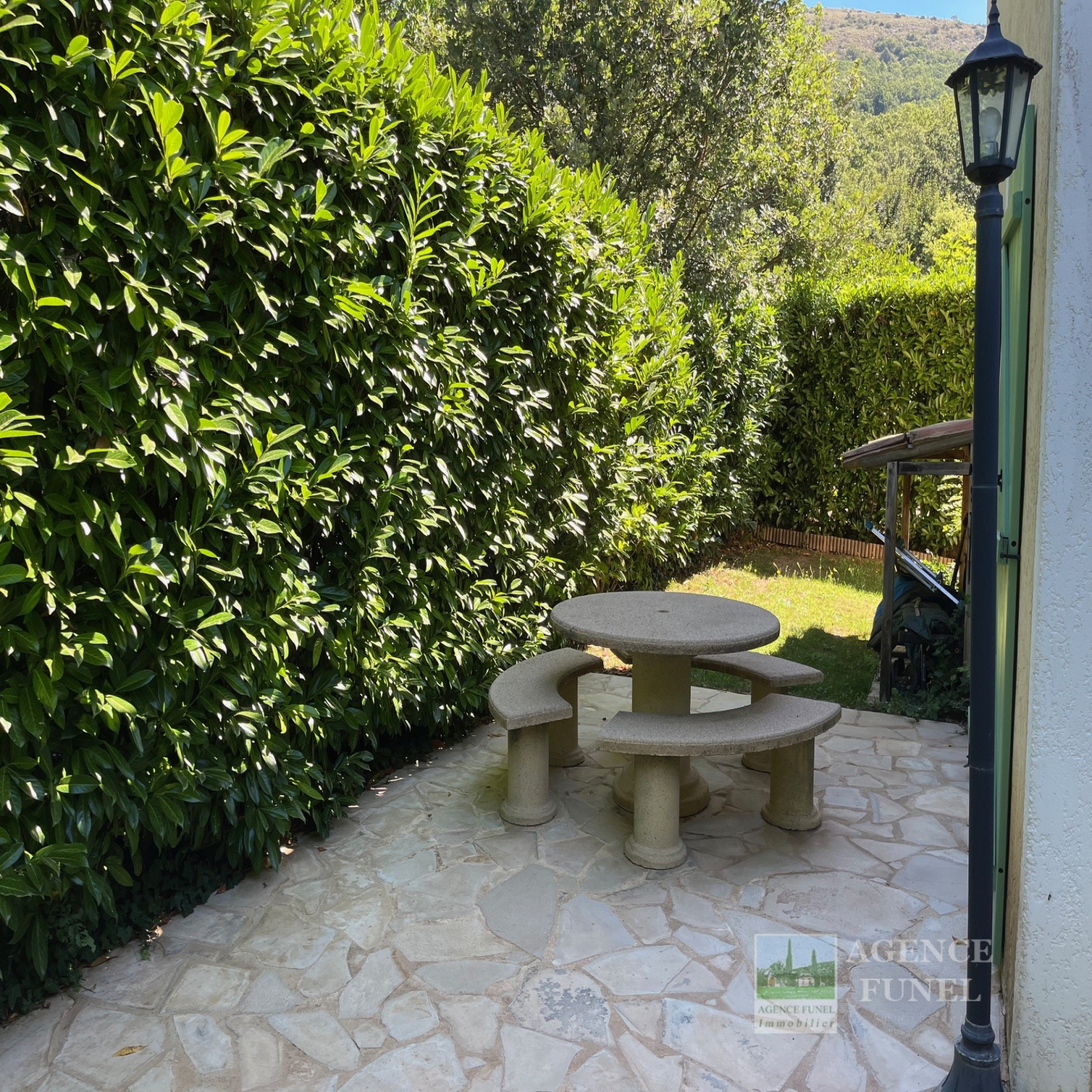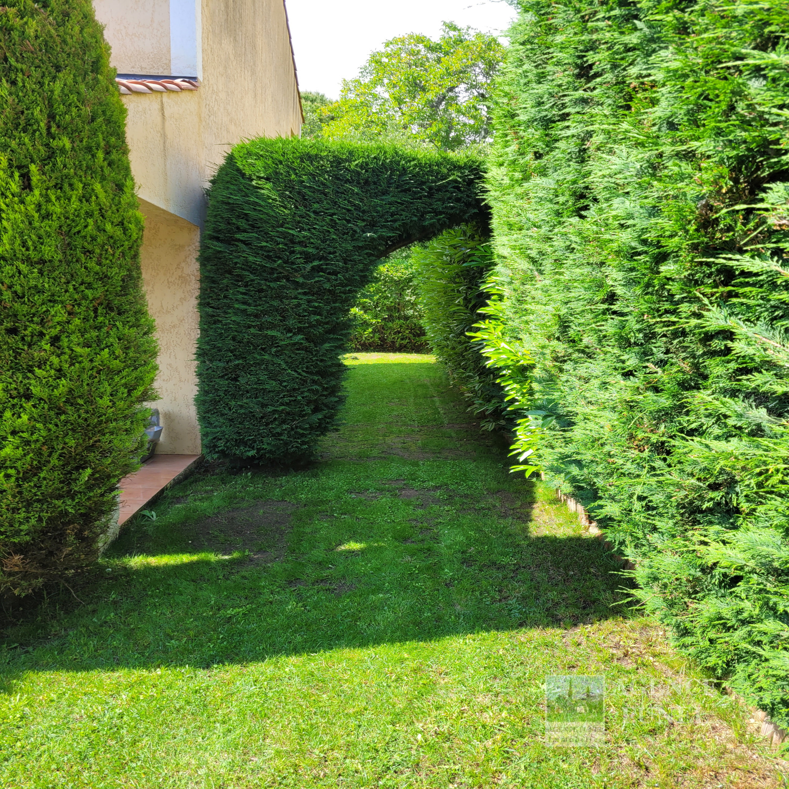 Très Agréable jardin attenant plat et cloturé avec petite piscine semi-enterrée.