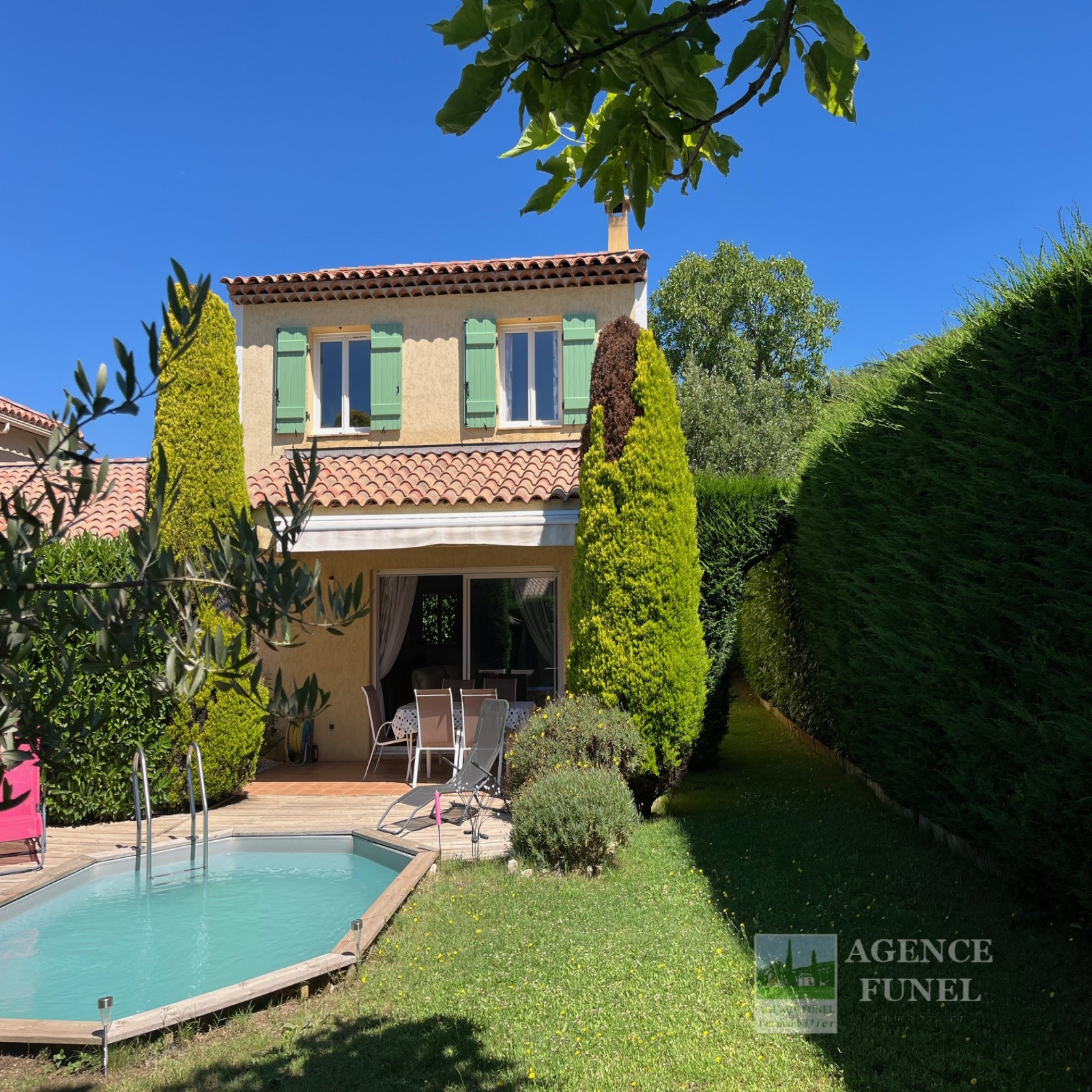 A proximité de toutes commodités, Très Jolie Villa discrètement jumelée d'1 seul côté par le garage, composée de :