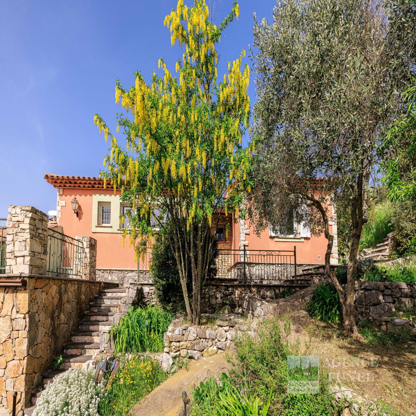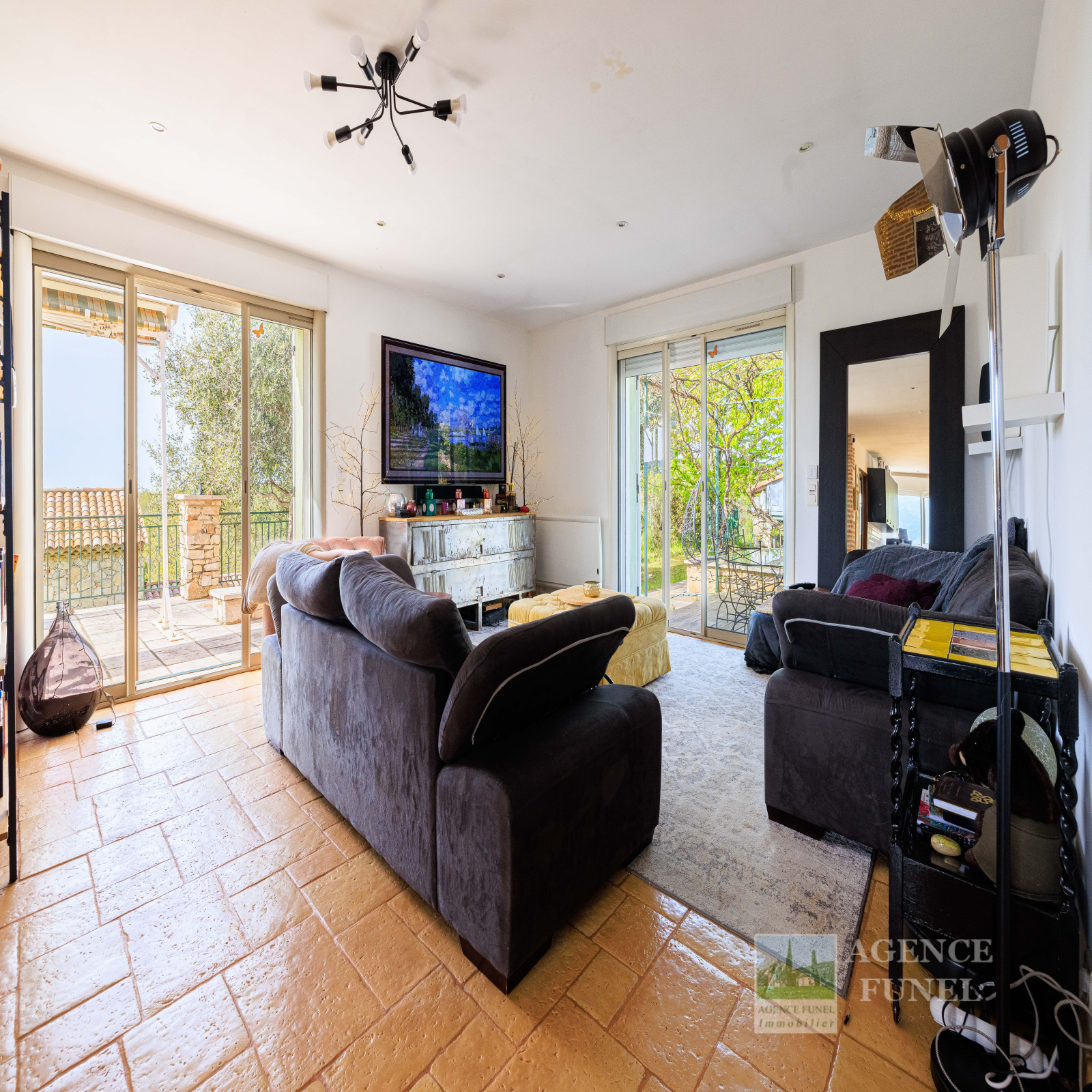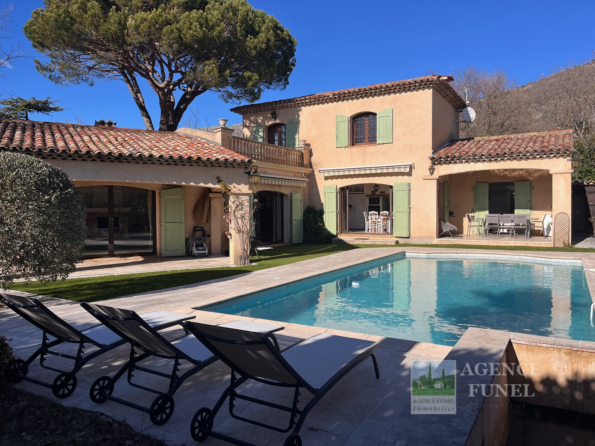 Terrain de 1.000 m² environ avec belle piscine et vastes terrasses extérieures.