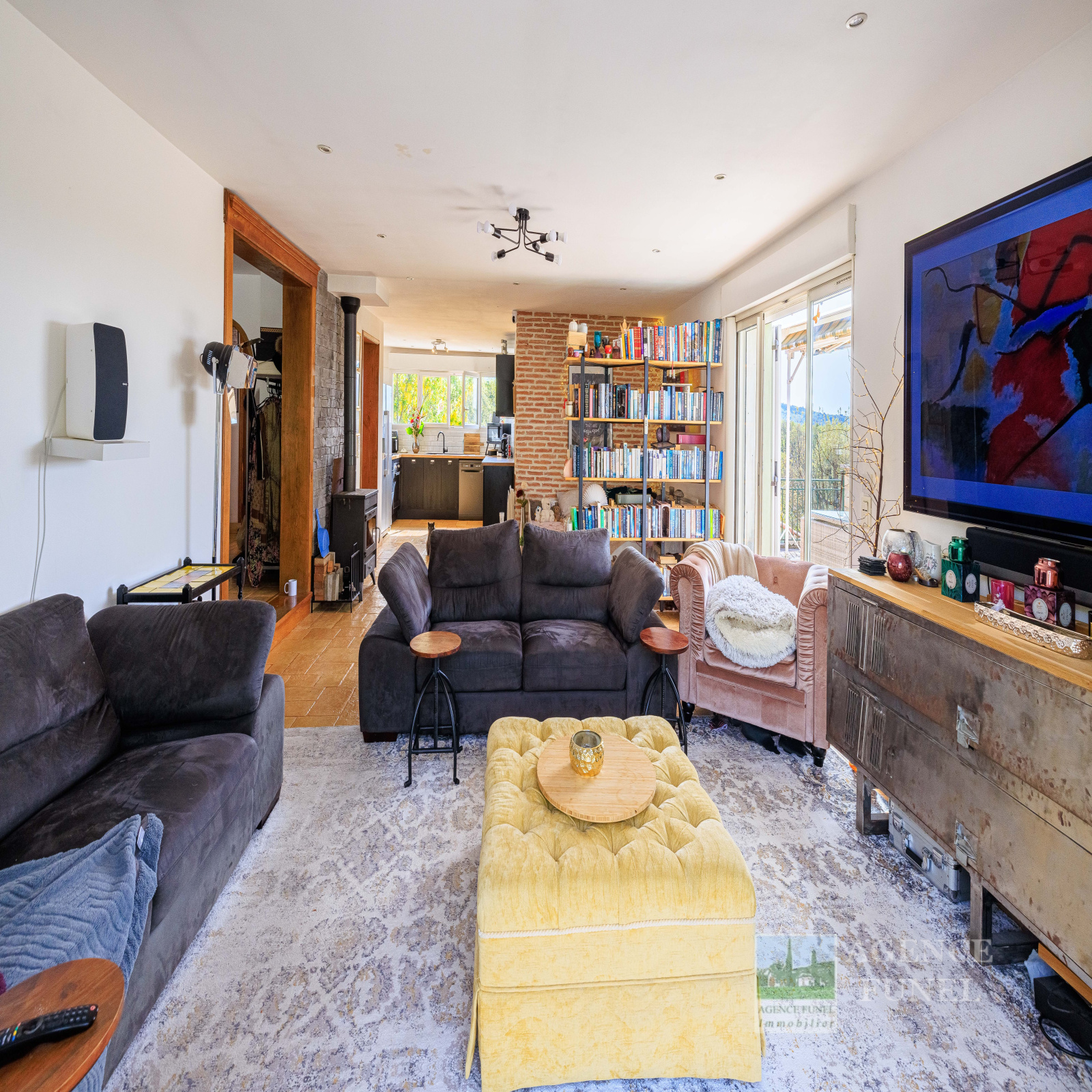 Bénéficiant d'une très belle Vue dégagée sur la nature, Très Agréable Villa Individuelle de plain-pied, aux volumes généreux, composée de : Entrée-dégagement, Vaste Living - Salle à manger avec Poêle à bois, Cuisine ouverte équipée, 1 Cellier, 2 Grandes Chambres, 1 Salle de bains avec Wc, 1 Wc indépendant, 1 pièce pouvant être aménagée en 3ème Chambre.