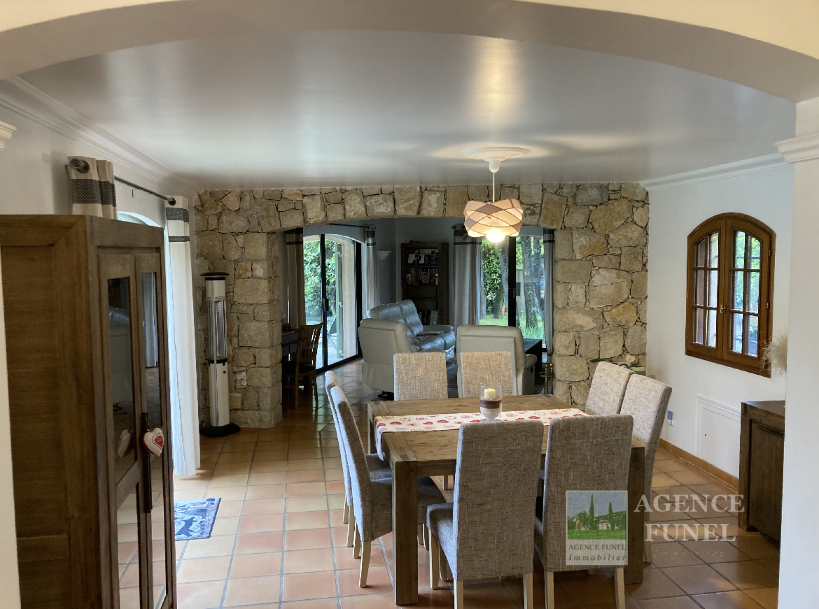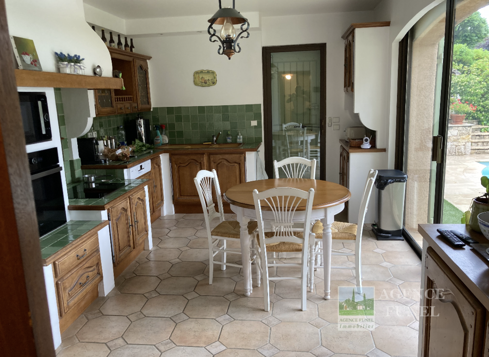 - RDC : Hall d'entrée, Vaste Living avec Cheminée-insert et salle à manger ouvrant sur la terrasse ainsi que la piscine par des baies vitrées en galandage, Cuisine aménagée avec coin repas ouvrant sur la terrasse et la piscine par une baie vitrée en galandage, 1 Chambre parentale avec Salle d'eau et Wc, Wc indépendant.