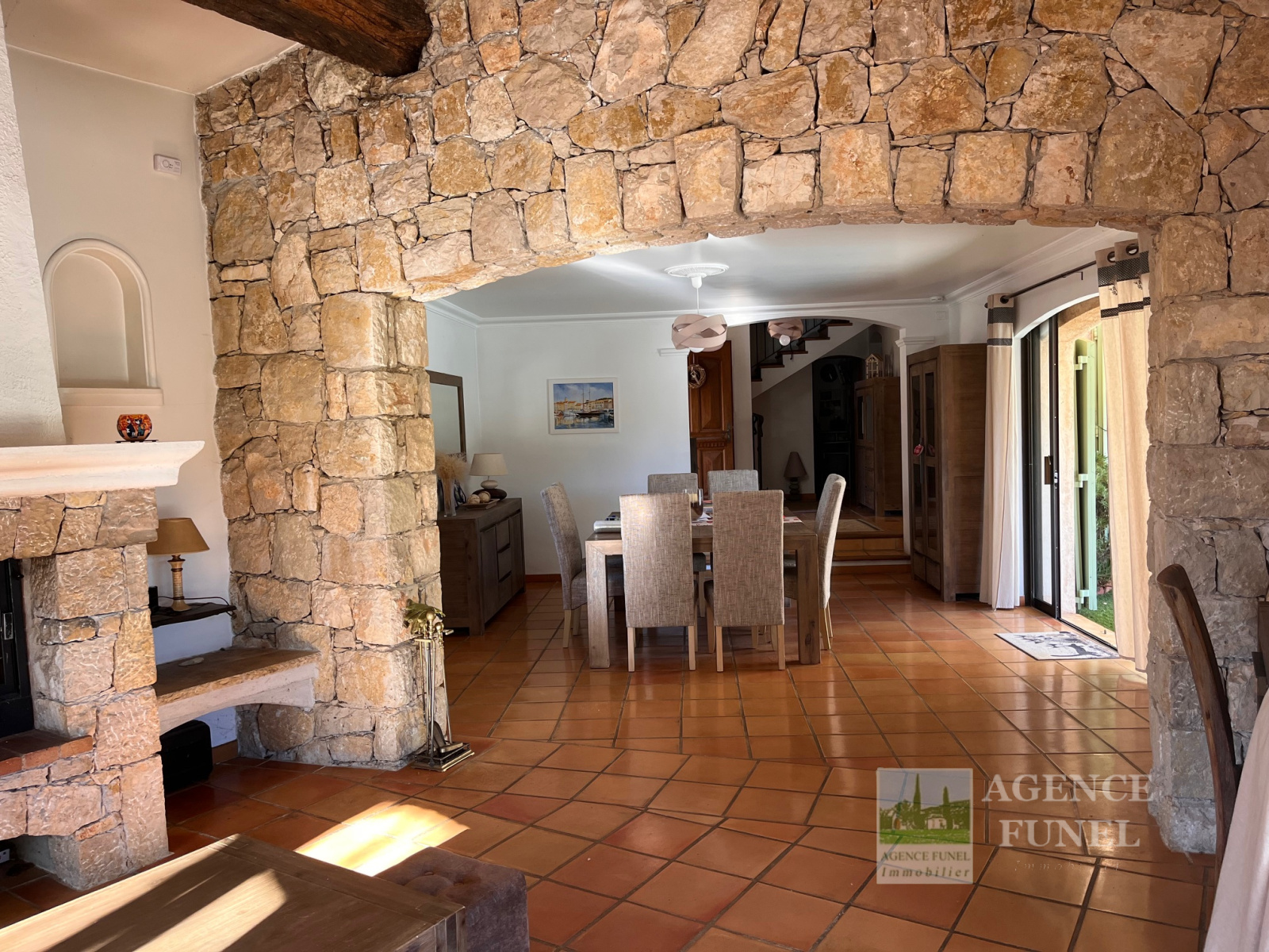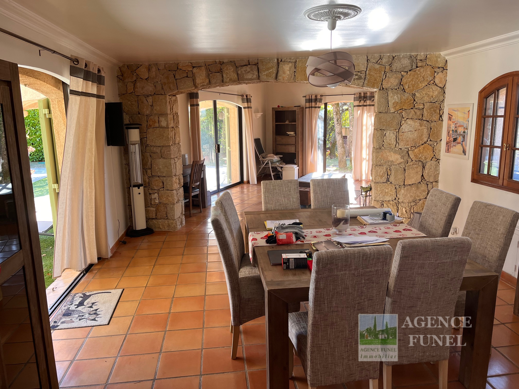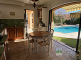 - RDC : Hall d'entrée, Vaste Living avec Cheminée-insert et salle à manger ouvrant sur la terrasse ainsi que la piscine par des baies vitrées en galandage, Cuisine aménagée avec coin repas ouvrant sur la terrasse et la piscine par une baie vitrée en galandage, 1 Chambre parentale avec Salle d'eau et Wc, 1 Bureau - Cellier, Wc indépendant.