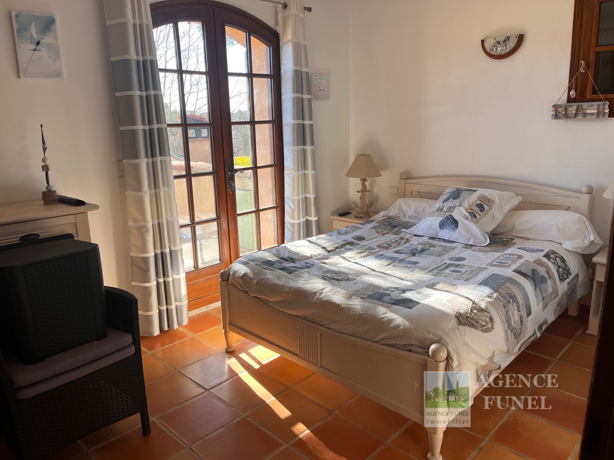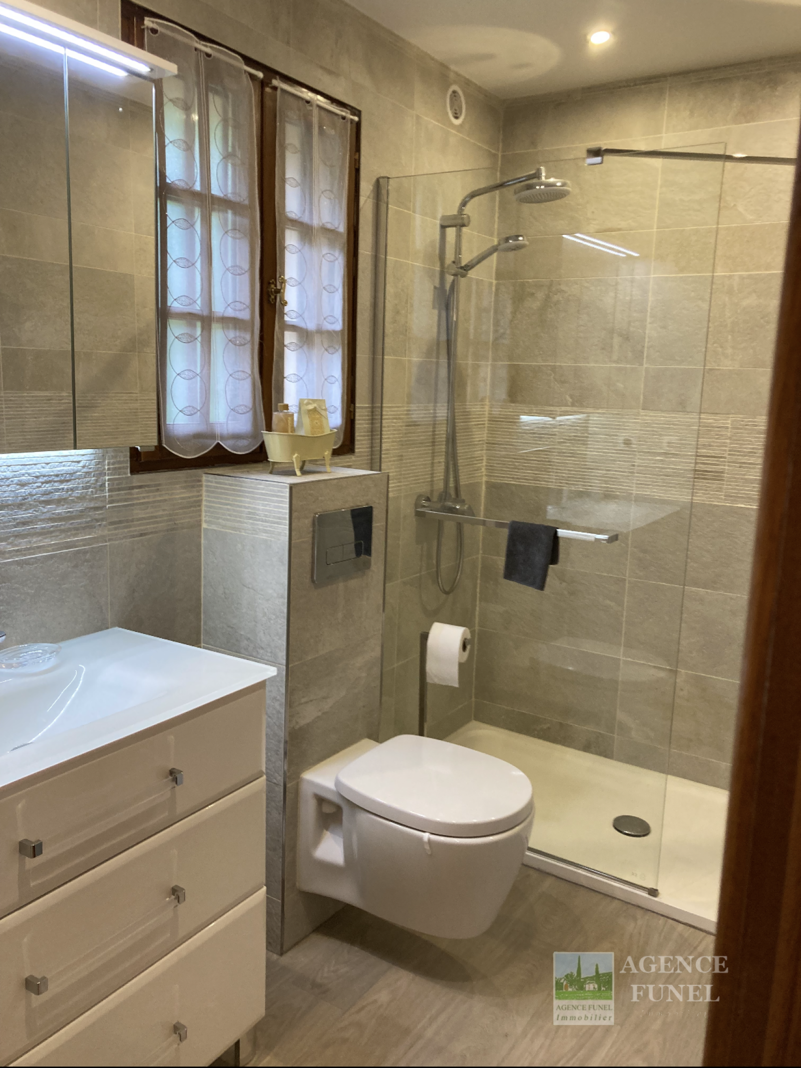 - A l'étage : Dégagement, 2 Chambres avec placards dont 1 avec un solarium, Salle d'eau avec Wc.