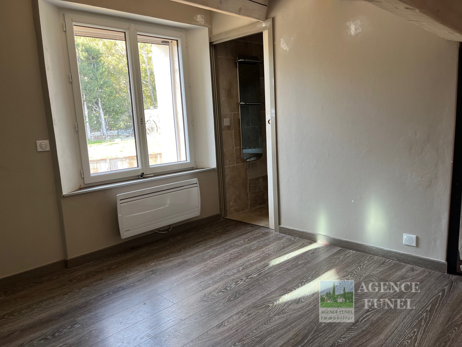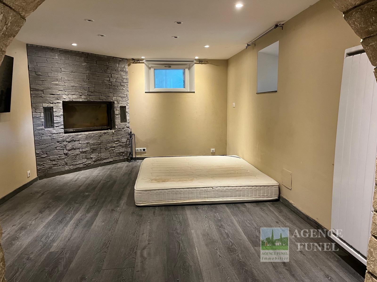 RDJ : Dégagement, 1 Grande chambre avec Cheminée-insert. 1 Studio attenant indépendant composé d'1 cuisine, 1 pièce, 1 salle d'eau avec Wc.