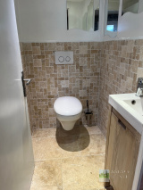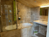 A l'étage : Dégagement (possibilité bureau), 2 Chambres avec chacune Salle de bains, Wc indépendant.