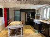 RDC : Entrée sur Salon ouvrant sur une Vaste Terrasse, Cuisine aménagée avec coin repas, Cellier-buanderie.