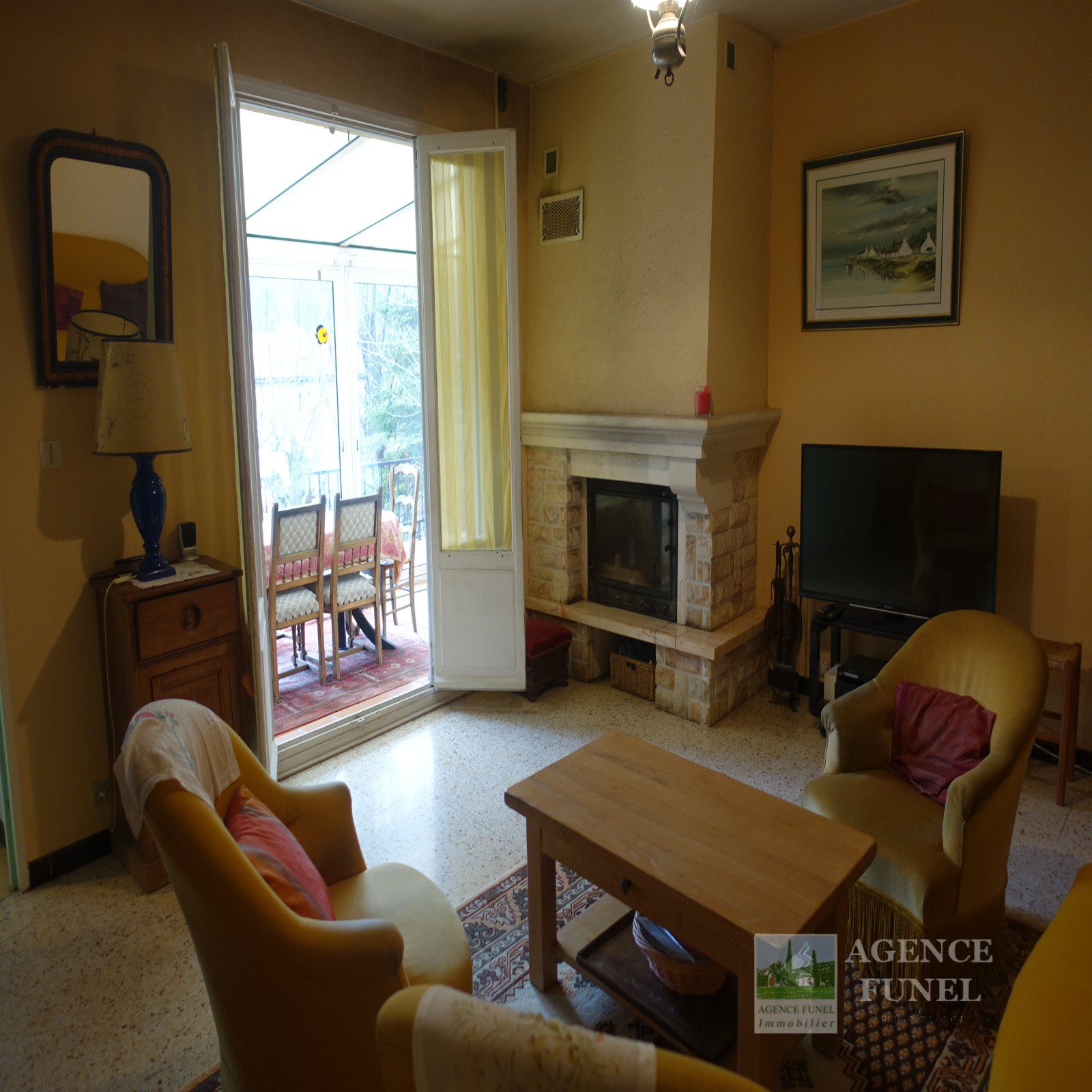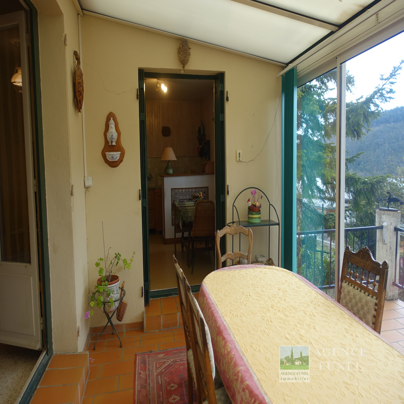 A 25 minutes de St Vallier, A proximité du village, Agréable Villa Individuelle de plain-pied se composant de : Véranda fermée, Salon avec cheminée-insert, cuisine, 3 Chambres, Salle de bains, Wc indépendant.