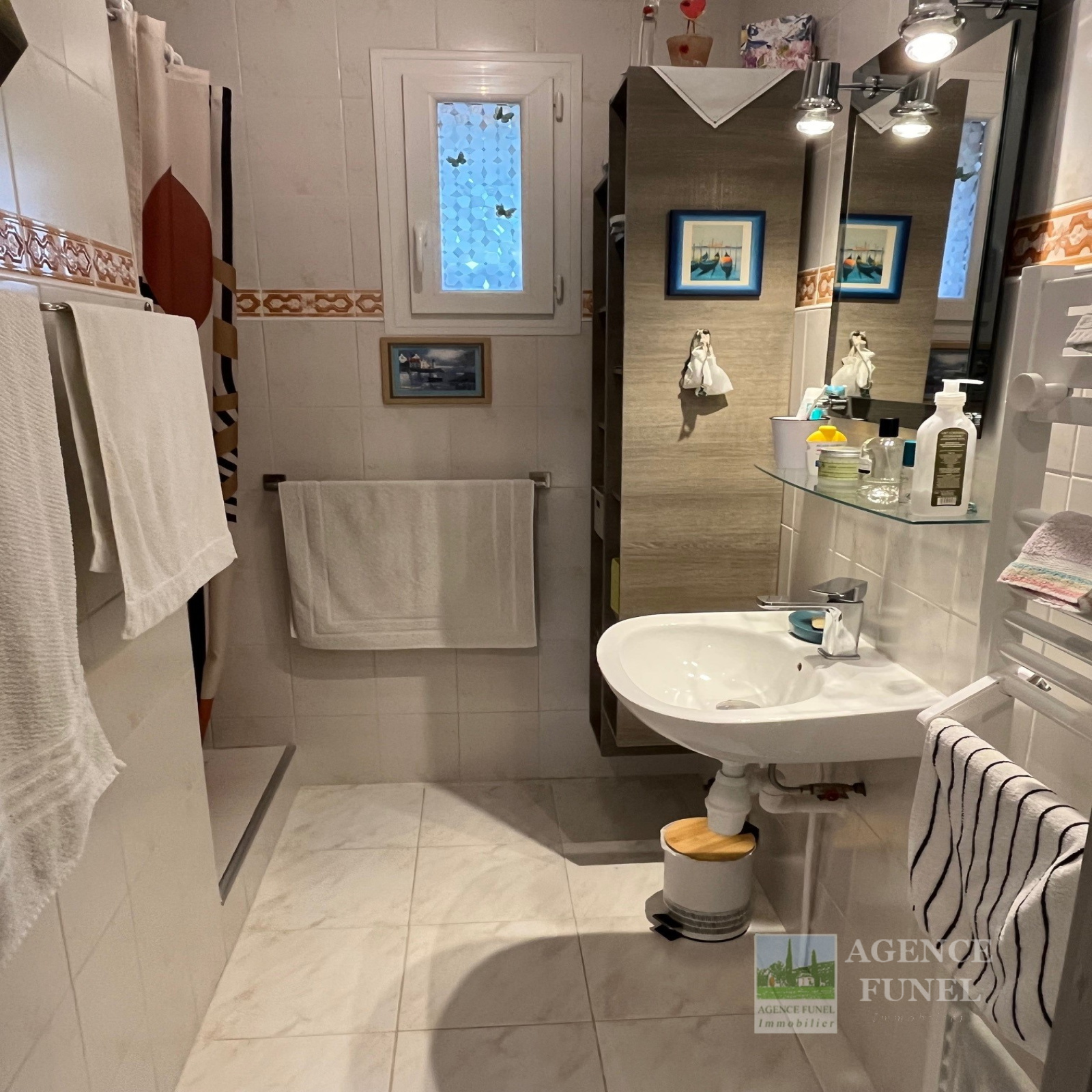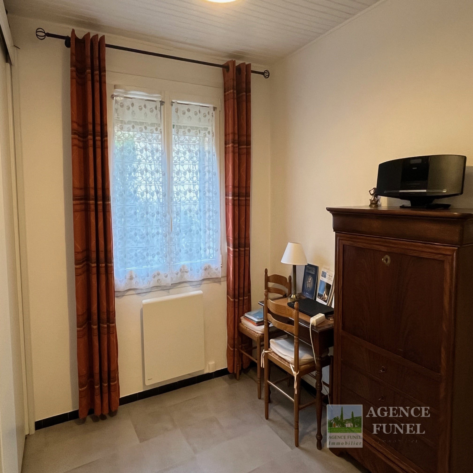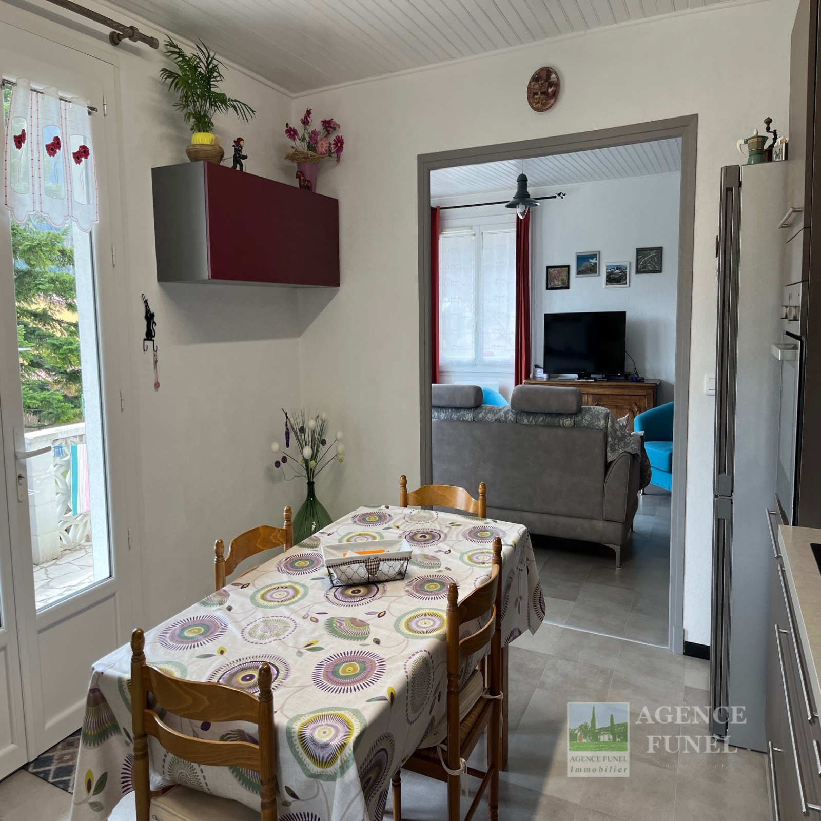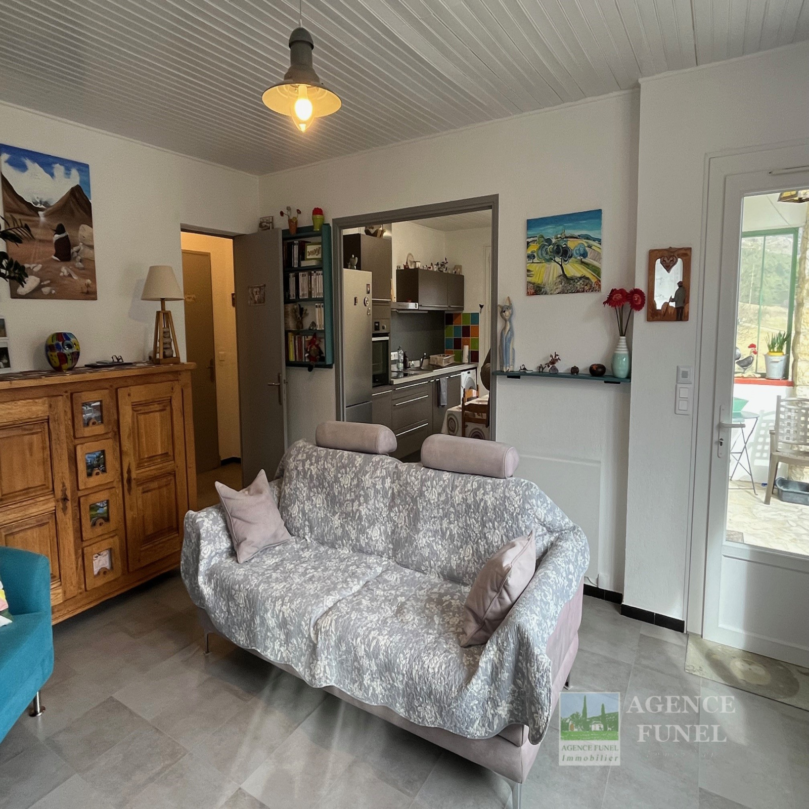 Elle se compose d'une entrée sur Salon, Cuisine aménagée avec coin repas, Dégagement avec placards, 2 Chambres, Salle d'eau, Wc indépendant