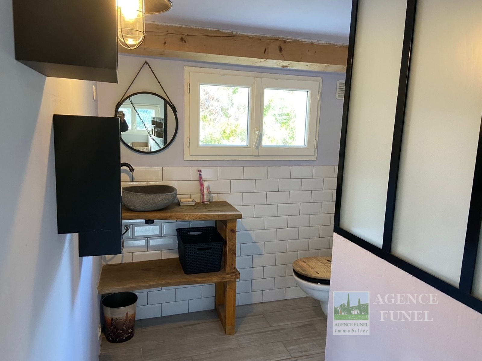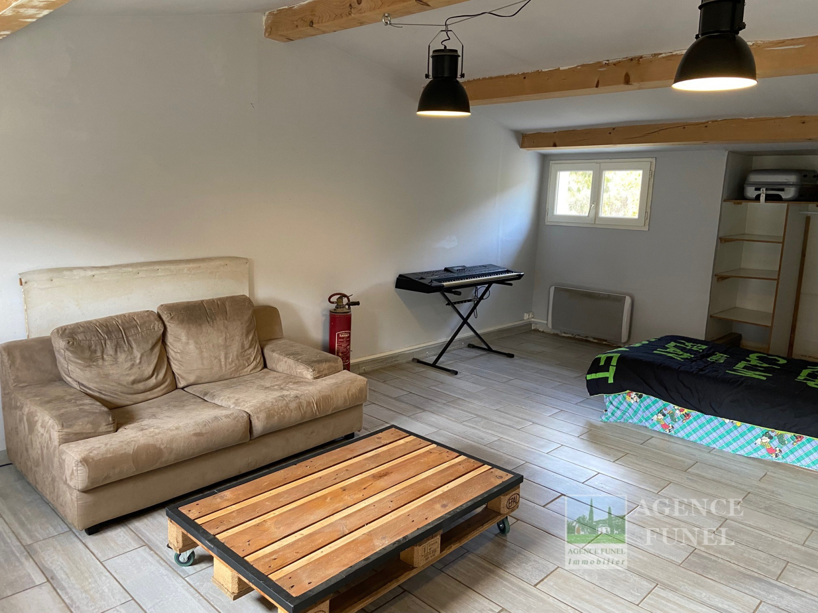 A l'étage : 1 grande Chambre (28 m² env.), Salle d'eau avec Wc.