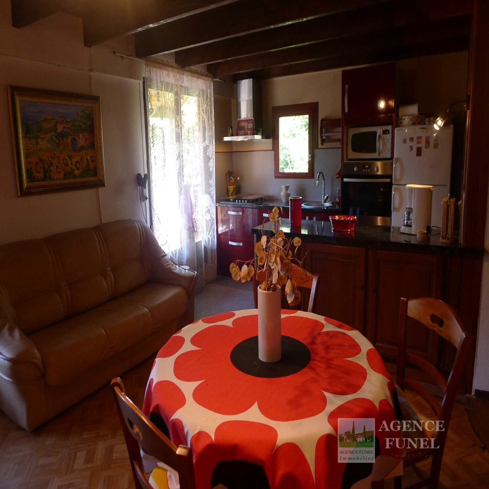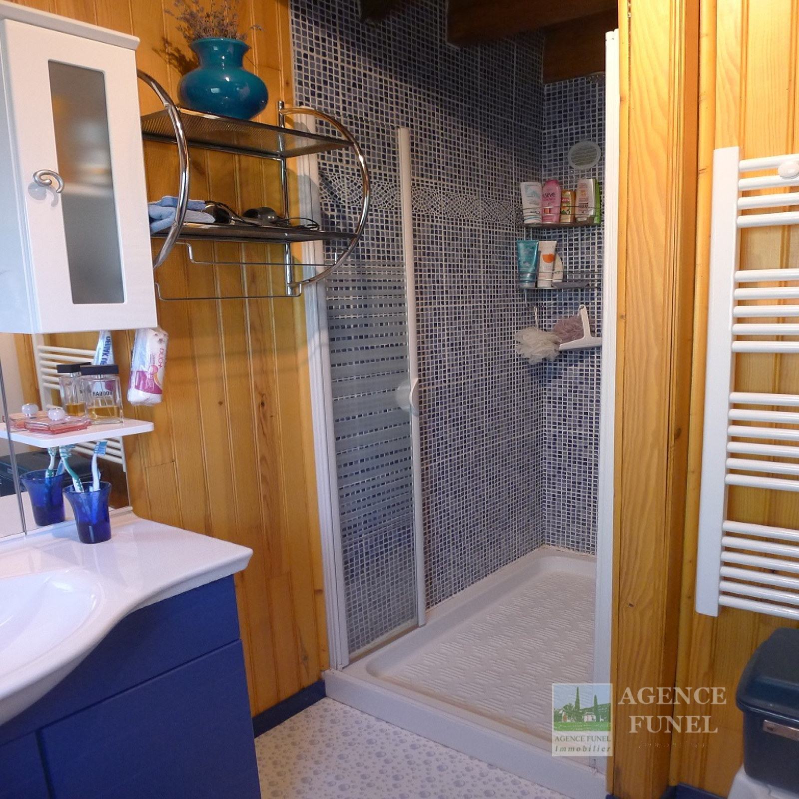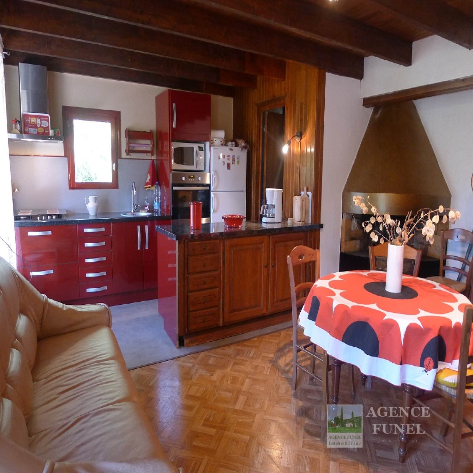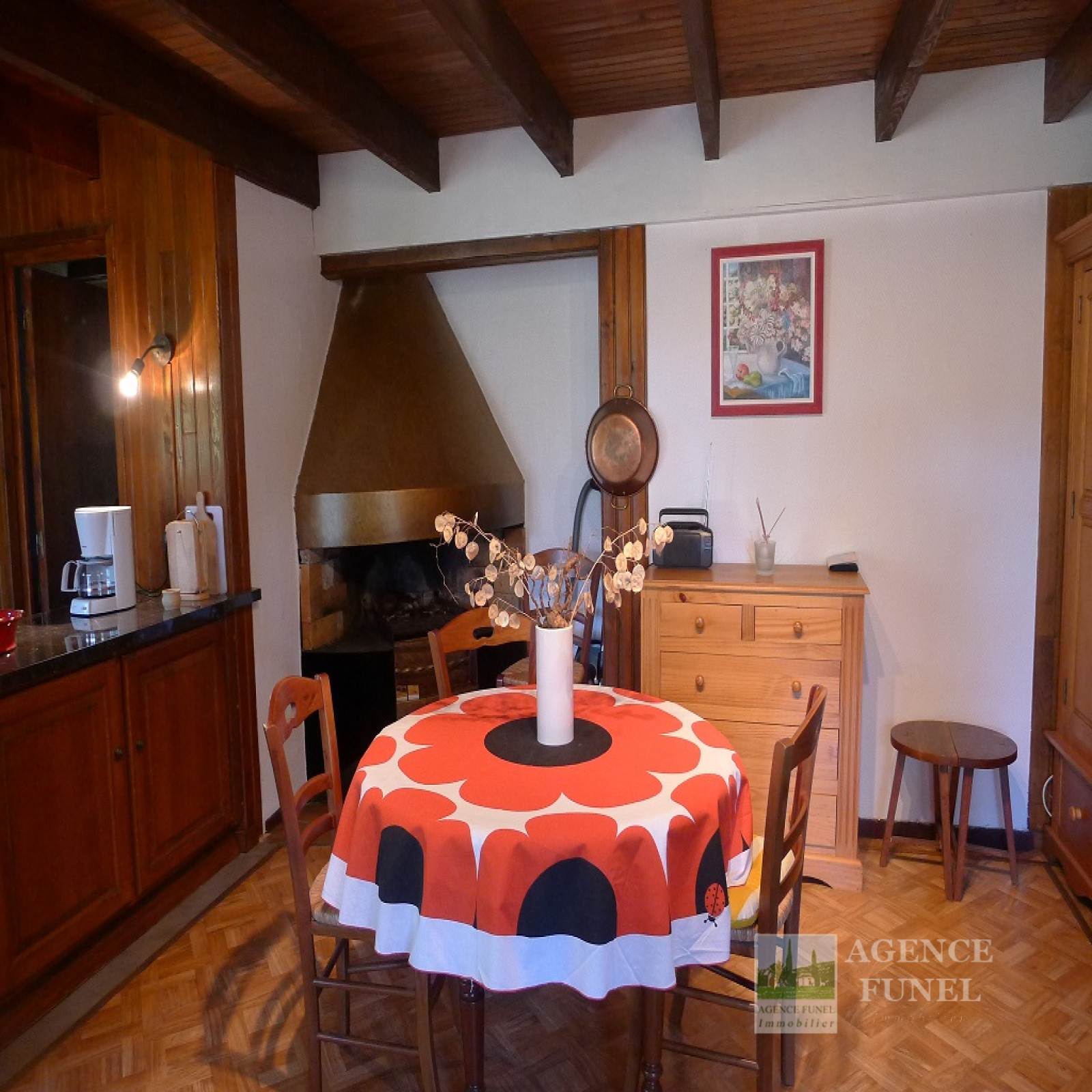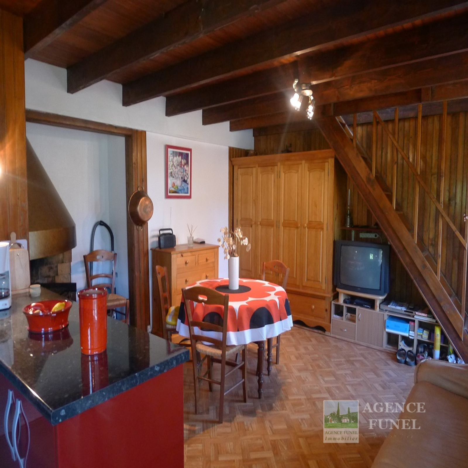 - RDC : Entrée sur Salon avec cheminée ouvrant sur une Terrasse, Cuisine américaine équipée, salle d'eau avec Wc.